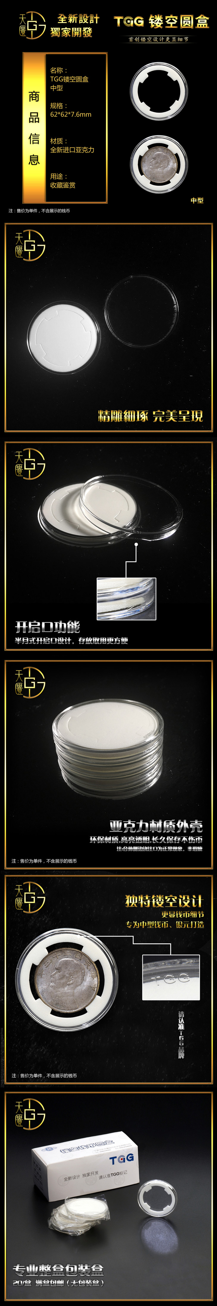 【TGG】(天匮) 钱币硬币镂空收藏圆盒38mm袁大头银元镂空收藏盒