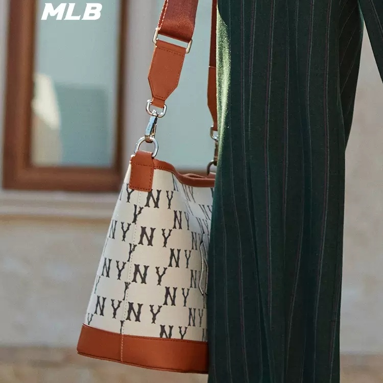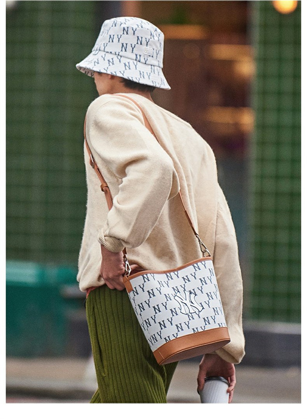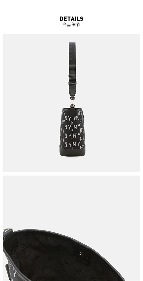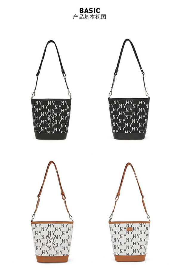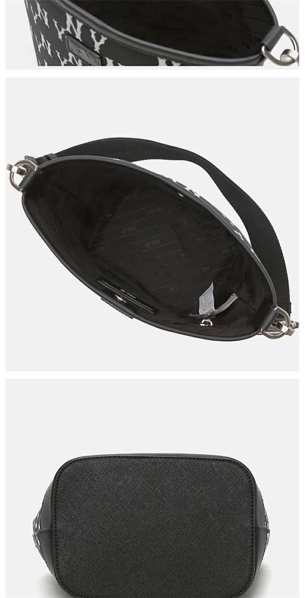 【品牌授权】扫码验证 韩国MLB复古老花水桶包-奶油色 米色 黑色 女新款老花满印休闲时尚 3ABML023N 商品图7