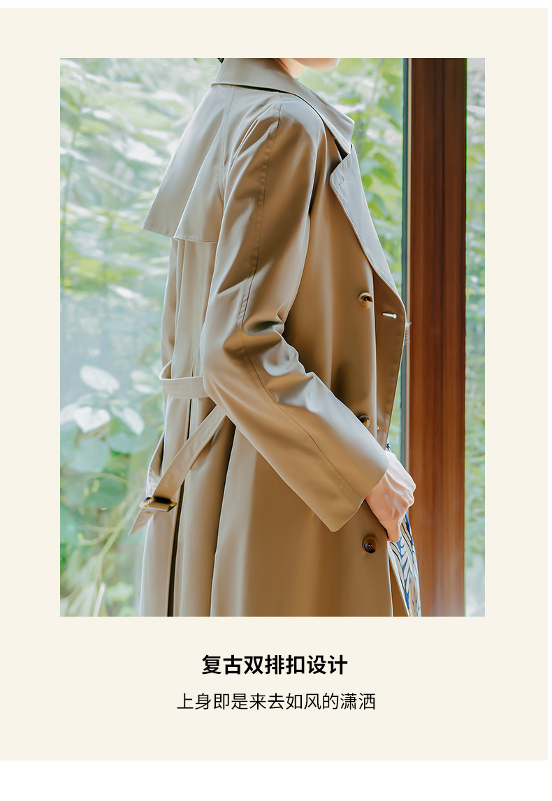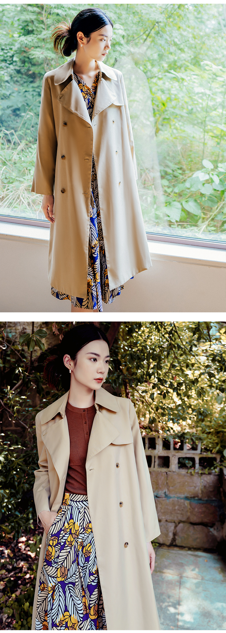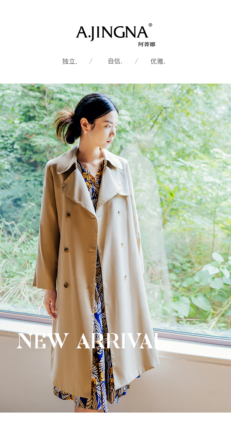 【商城同款】阿菁娜经典双排扣驼色长款时尚风衣外套A28Q105006