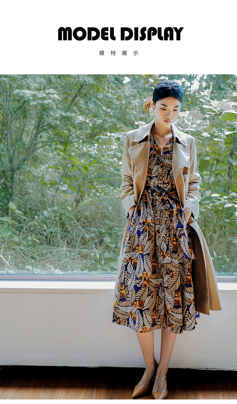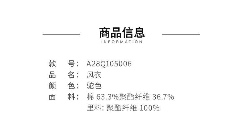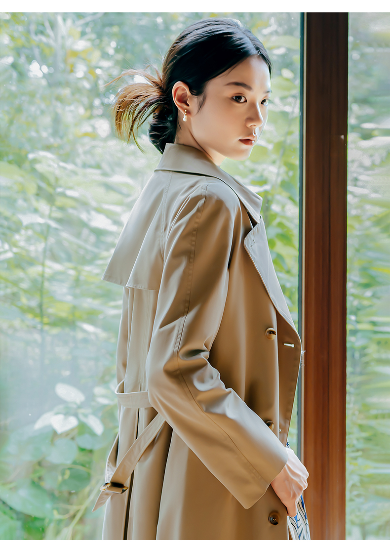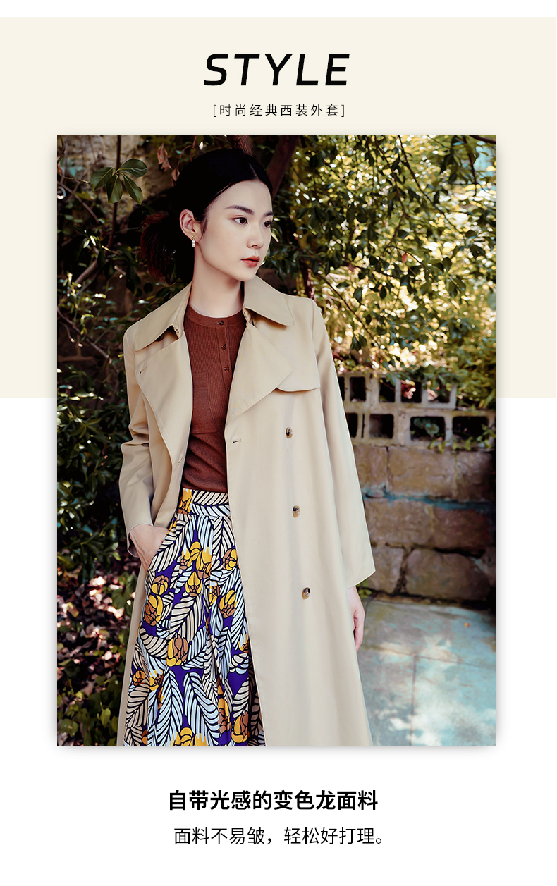【商城同款】阿菁娜经典双排扣驼色长款时尚风衣外套A28Q105006