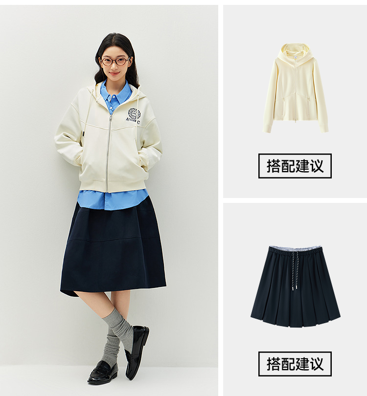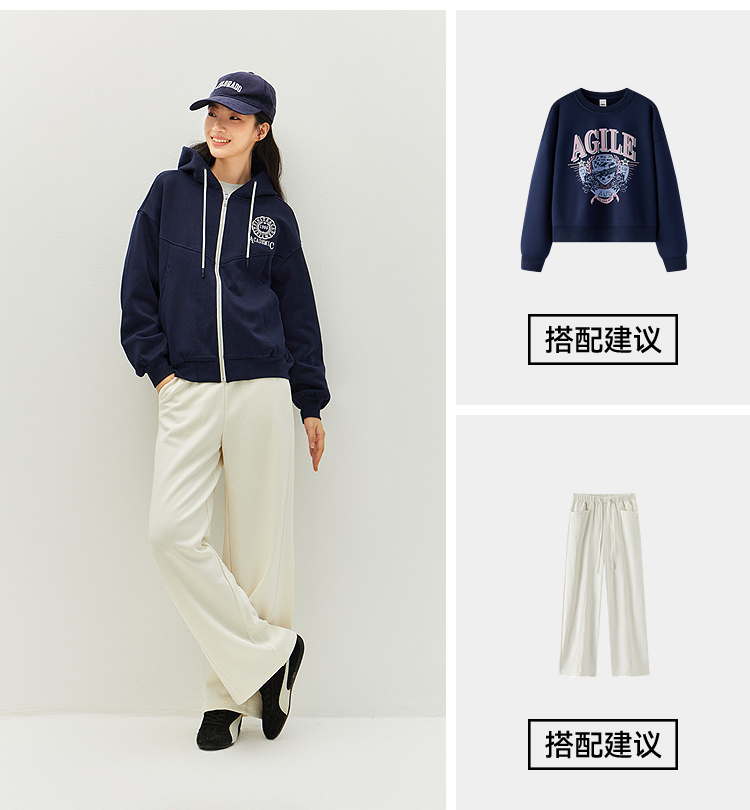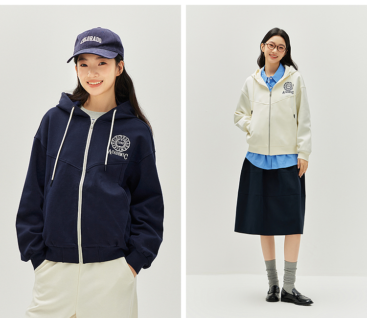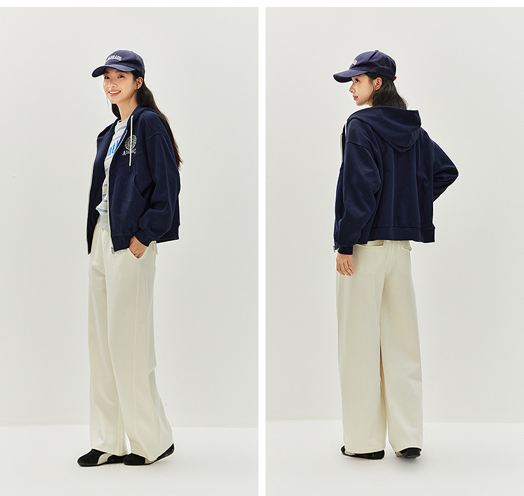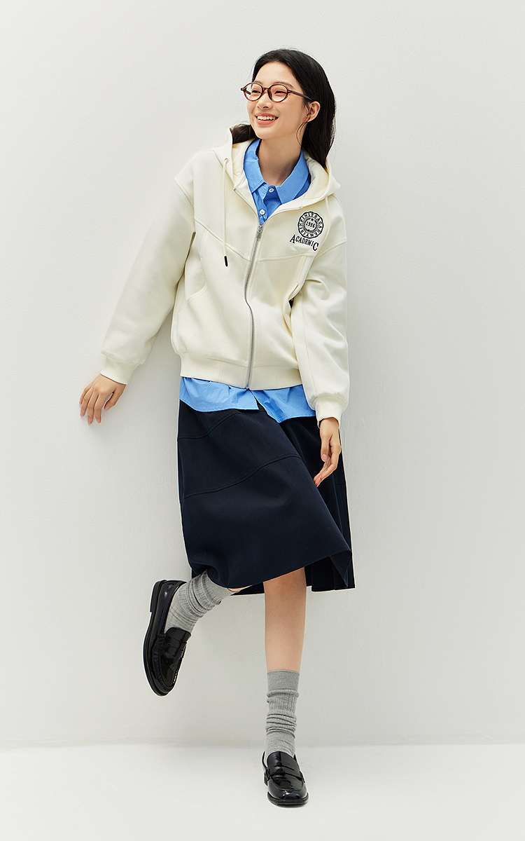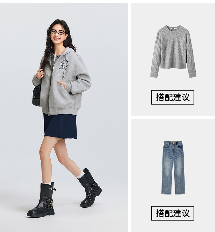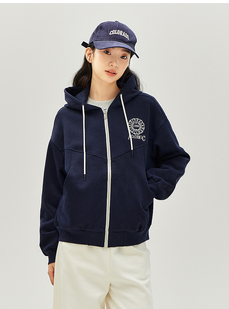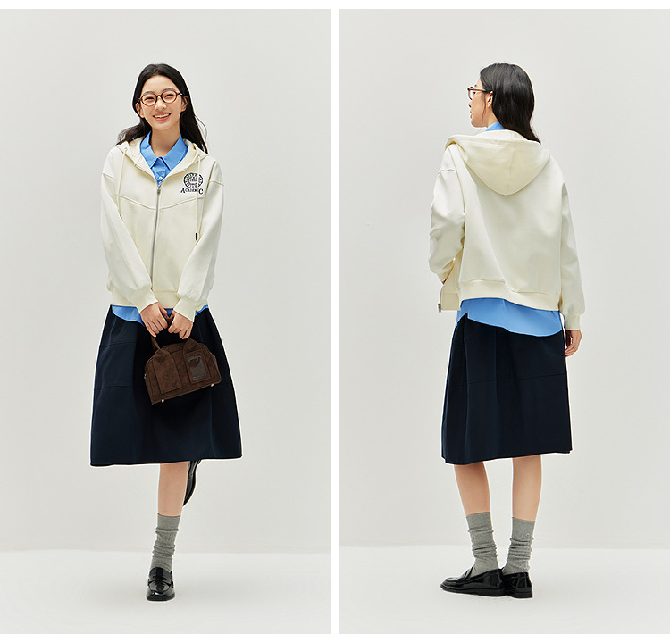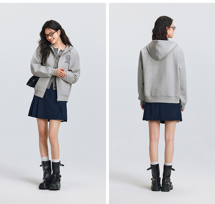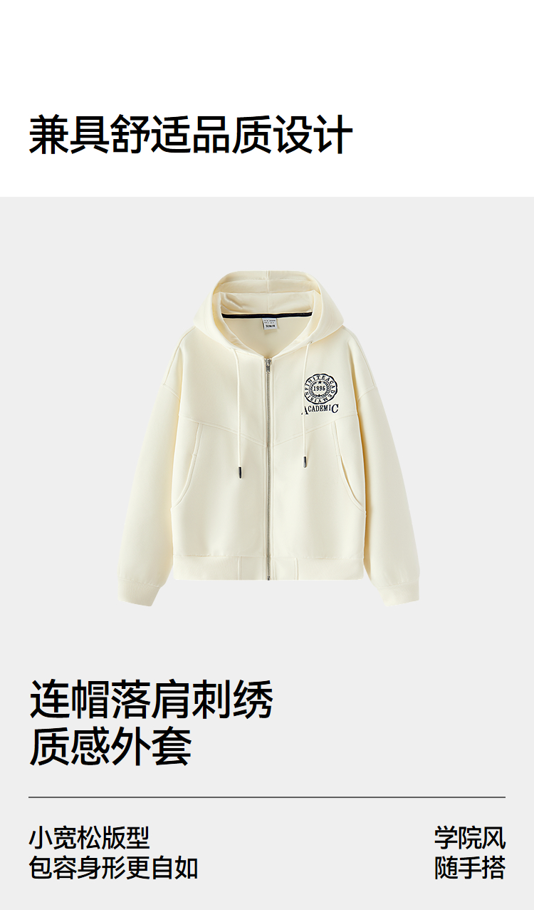 森马外套女春季连帽字母刺绣宽松落肩质感夹克分割气质学院风上衣