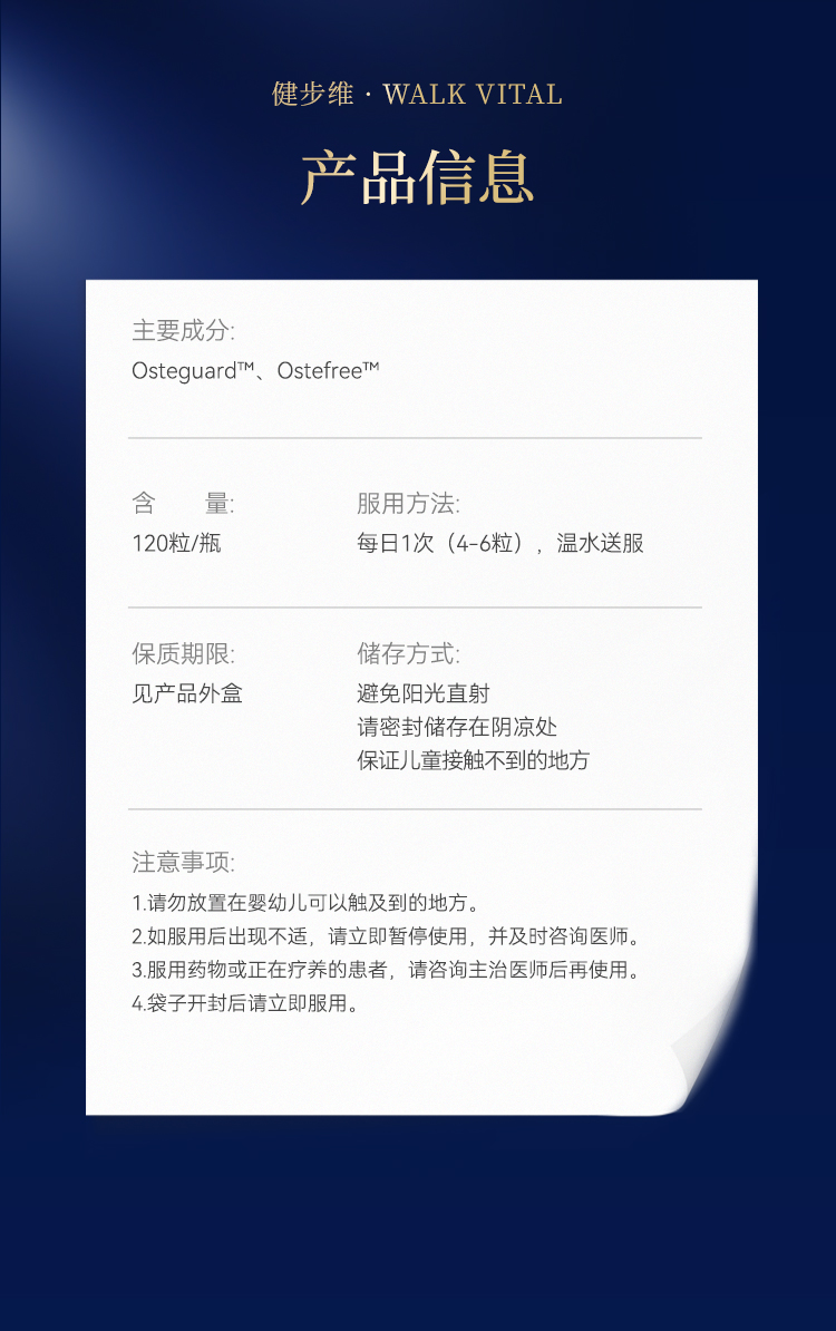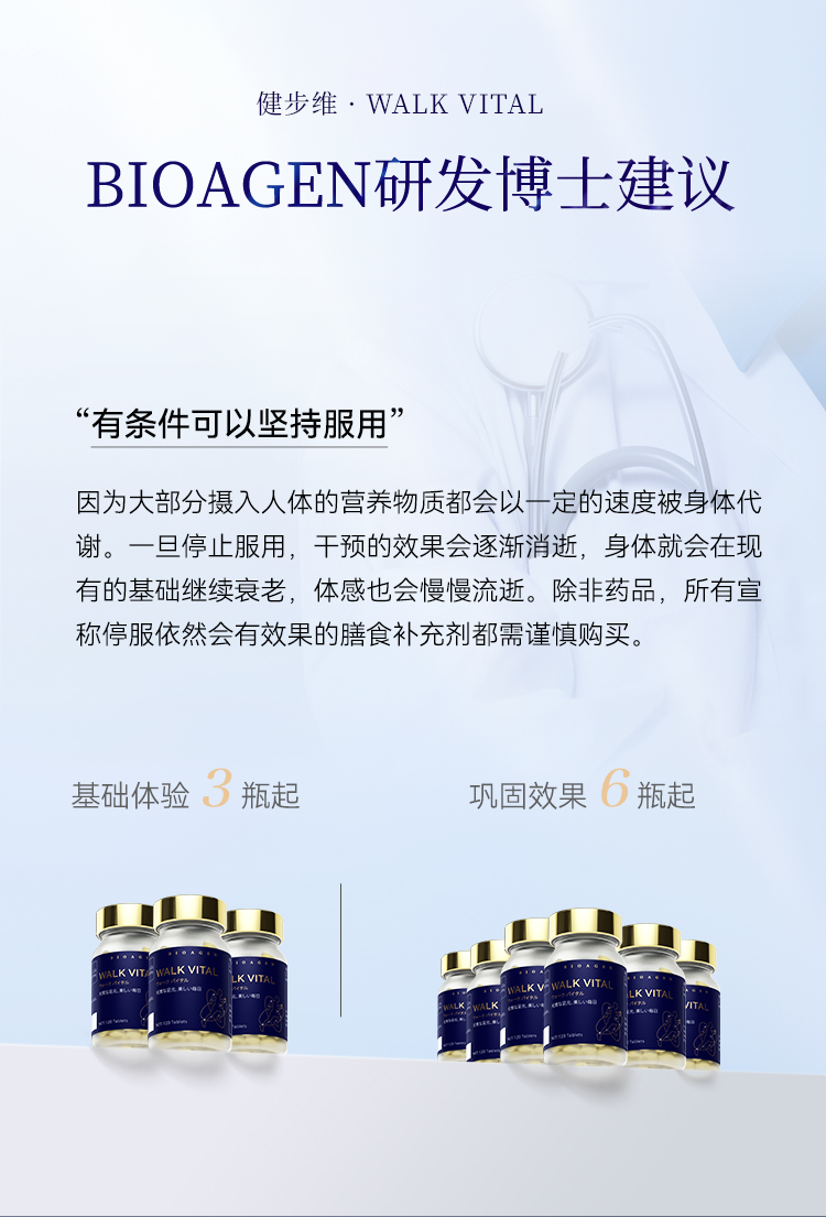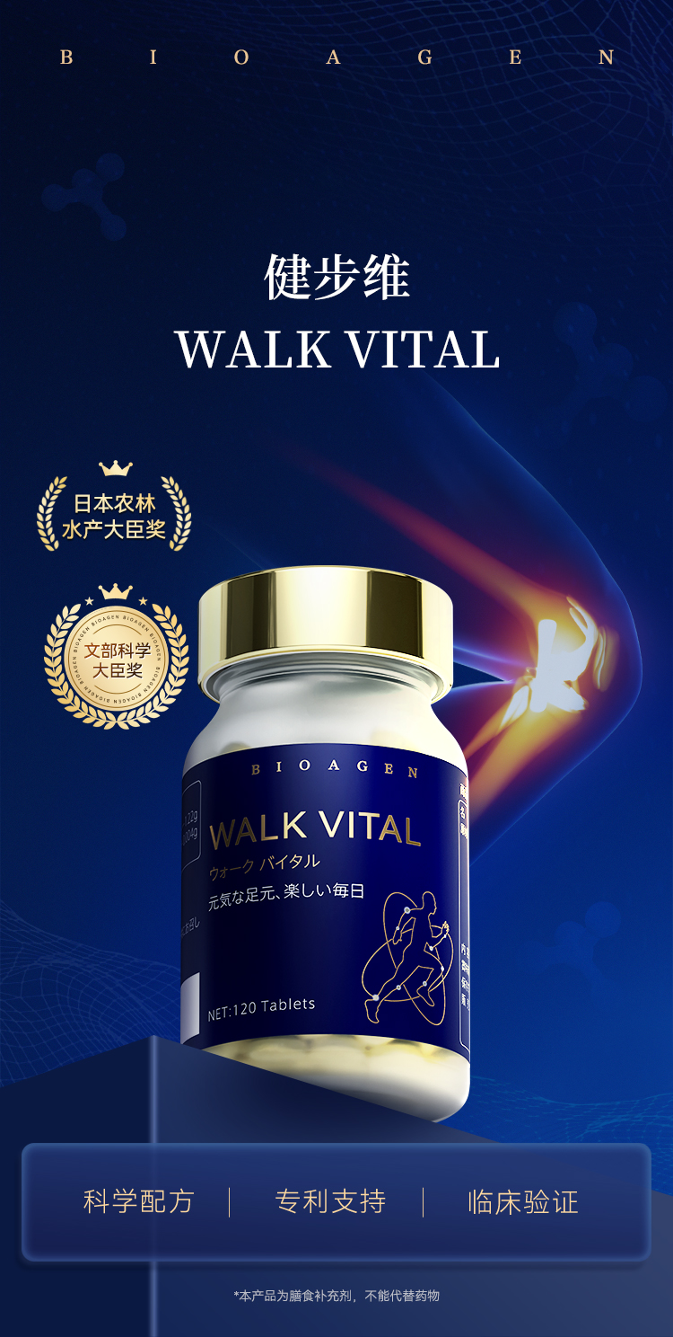 【预售-2周后安排发货】【香港直邮 时效7-15天】博奥真Bioagen 升级版健步维 单瓶装(120片/瓶) 守护骨关节行走焕青春