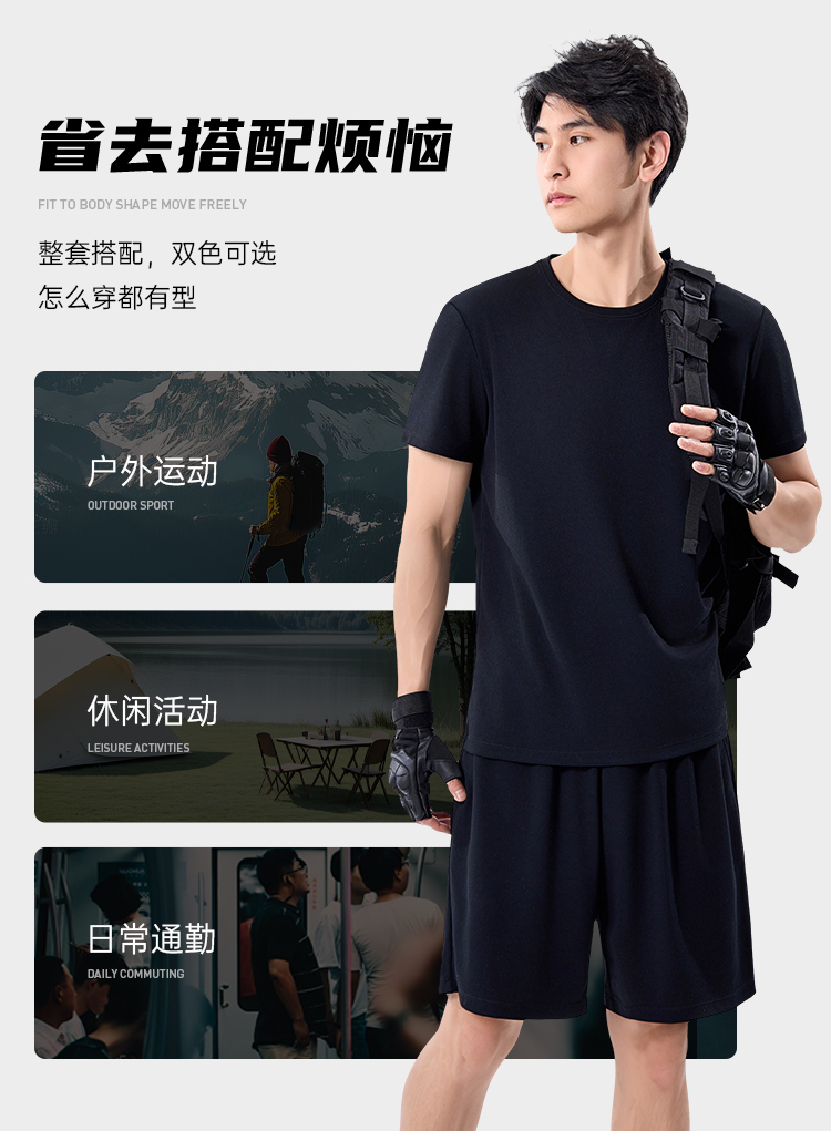 【干爽酷速干速导体能训练套装】户外快速导湿短袖T恤 透气清爽休闲短裤XZ501