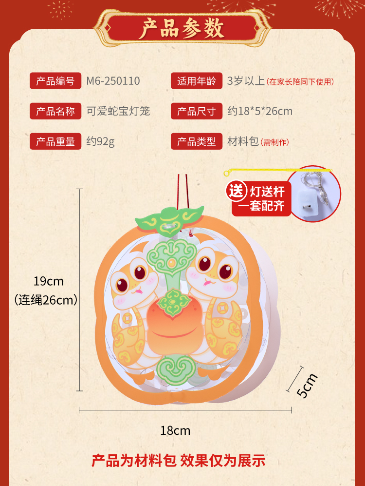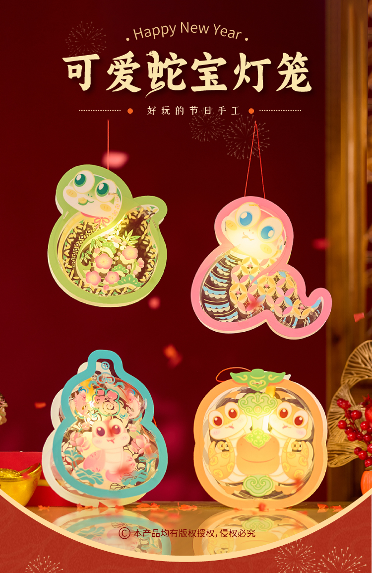 【MEIKE新年】新年蛇年春节元旦可爱蛇宝灯笼手工diy儿童材料包花灯幼儿园2025