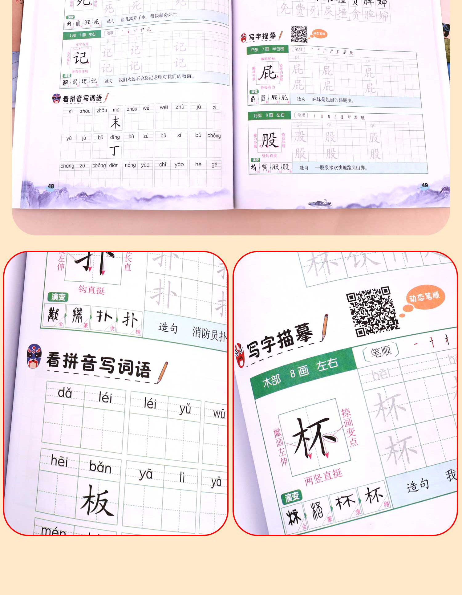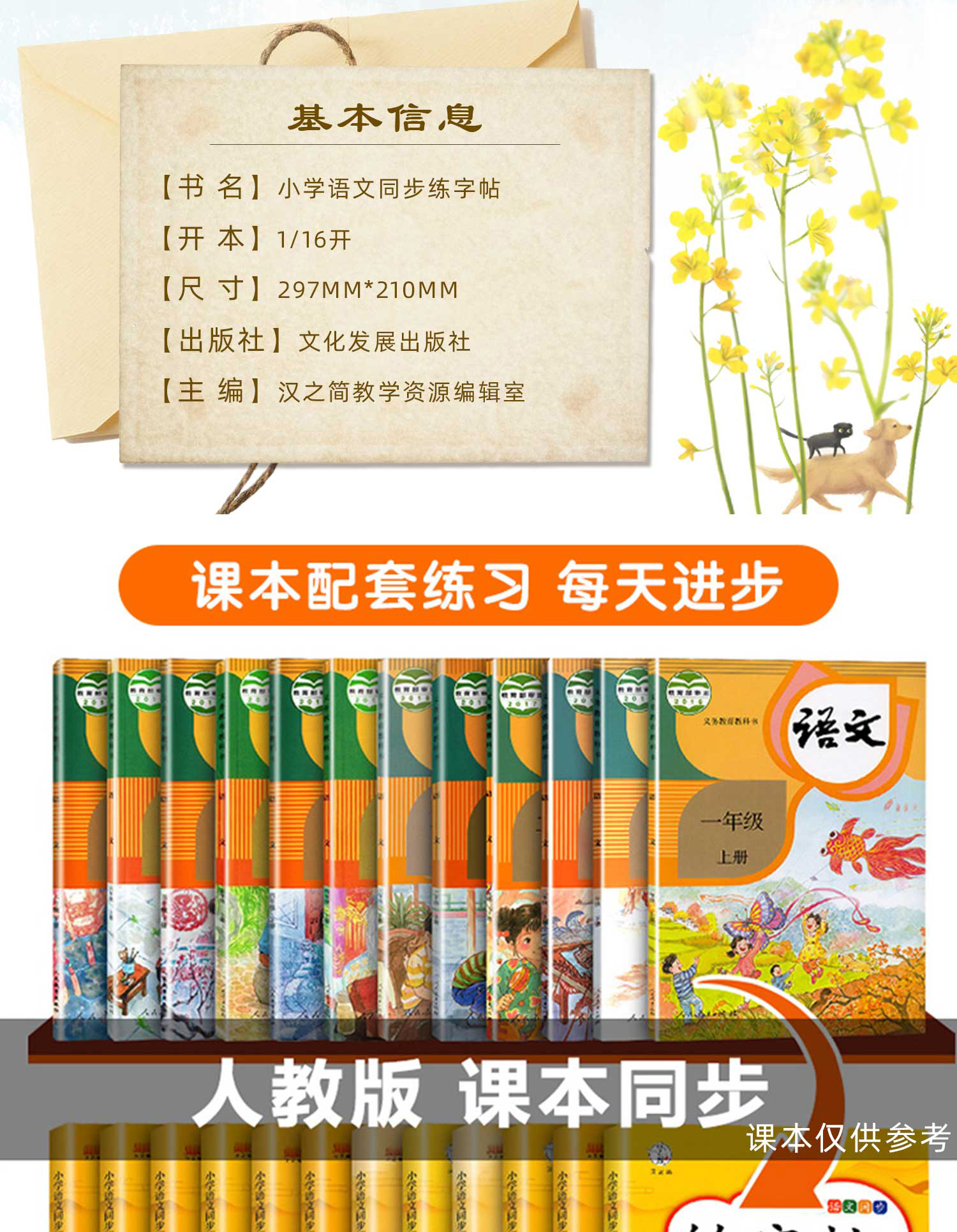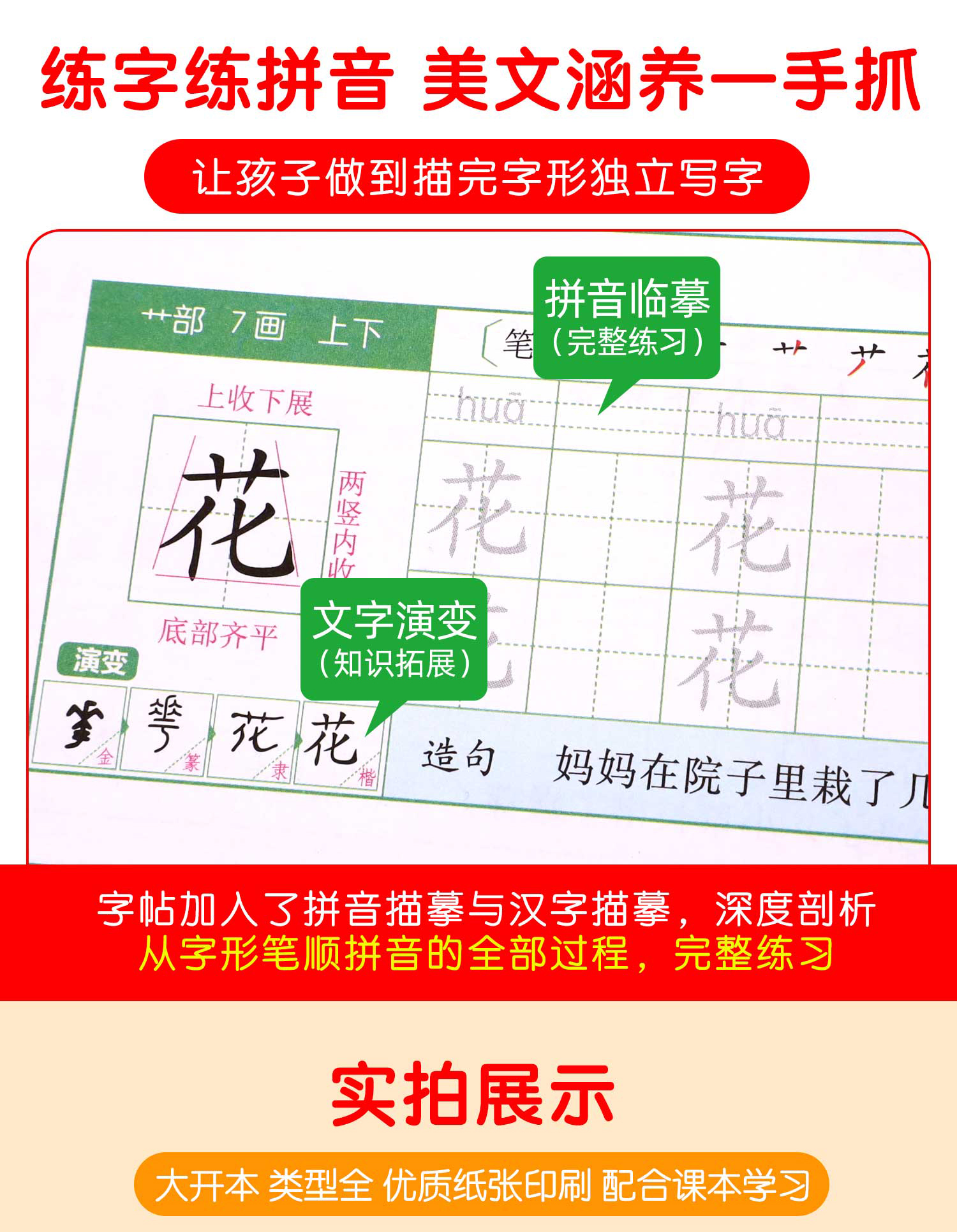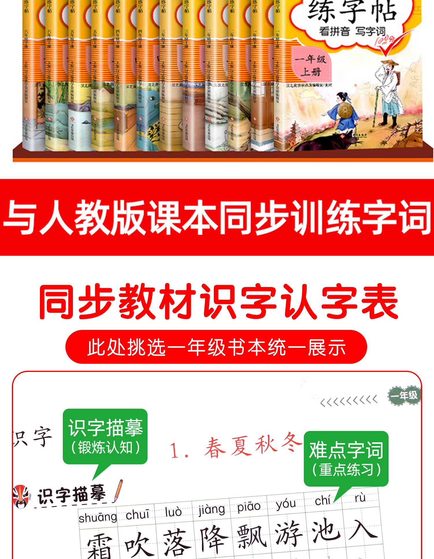 2024人教版 小学一年级字帖 练字二年级三年级上册语文同步练字帖 四五六年级上下册控笔训练练习 楷书练字本小学生儿童初学者写字