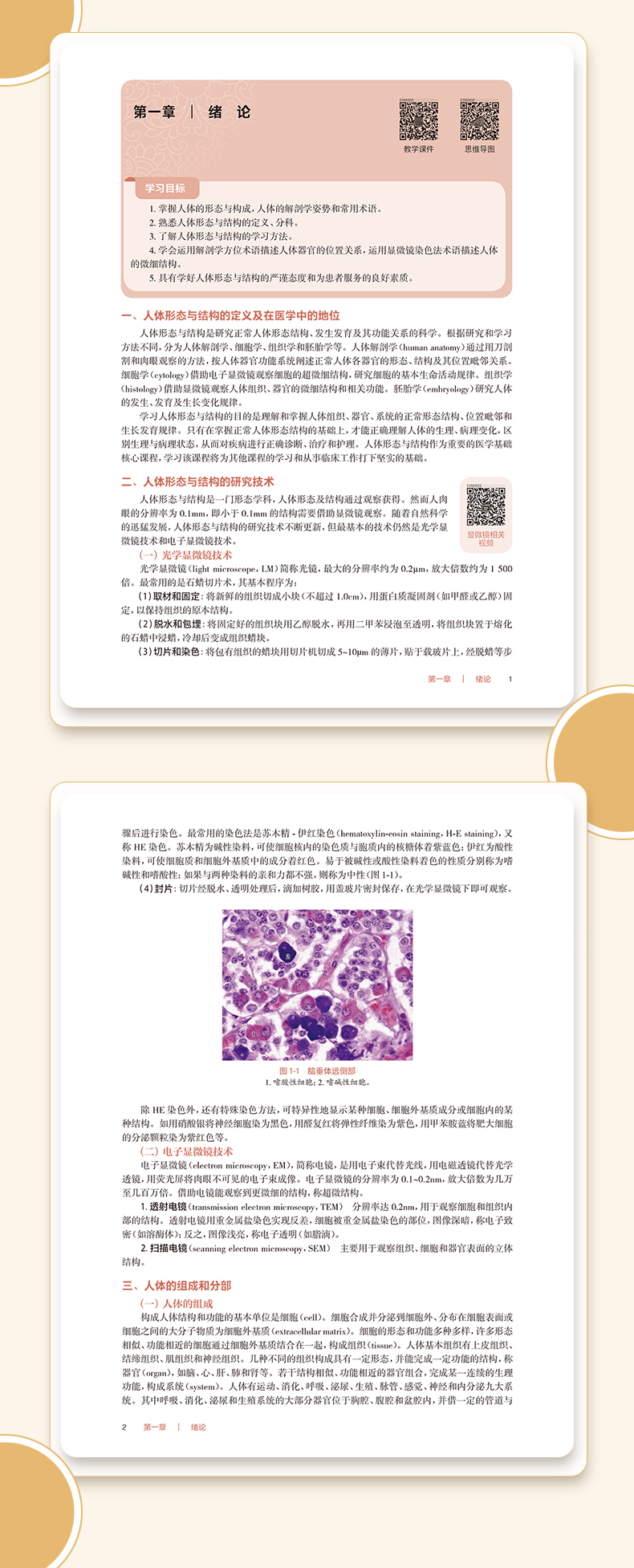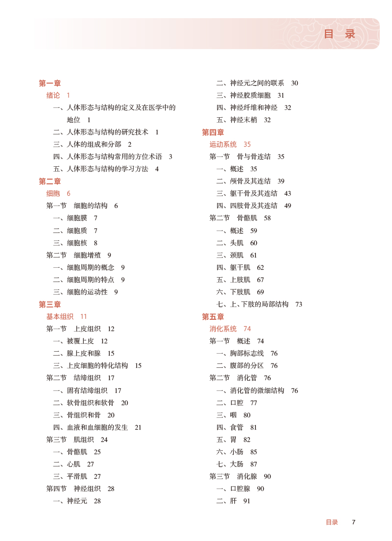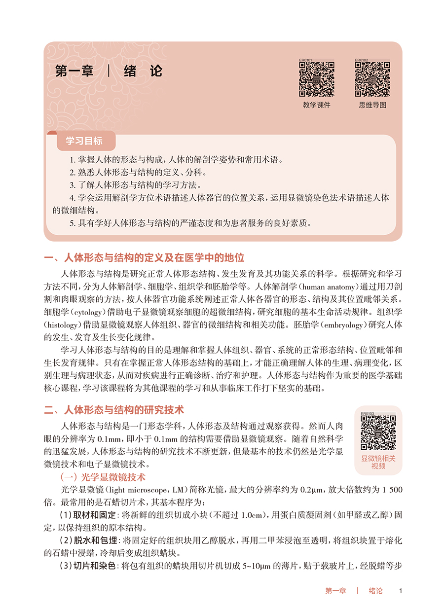 本教材为高等职业教育专科护理类专业“十四五”规划教材之一、国家卫生健康委员会“十四五”规划教材之一。人体形态与结构是研究正常人体形态结构特征、器官系统的位置毗邻关系、发生发育规律和功能意义的科学,包括人体解剖学、组织学、胚胎学3门学科,是一门重要的医学基础课程。主要内容包括人体的上皮组织、结缔组织、肌组织和神经组织4大类;几种组织有机结合,构成具有一定形态和功能的结构称为器官,如心、肝、脾、肺、肾、胃、脑等;许多功能相关的器官组合在一起构成系统,完成人体相应方面的系列生理功能;组成人体的系统有运动、消化、呼吸、泌尿、生殖、脉管、感觉器、内分泌和神经9大系统。