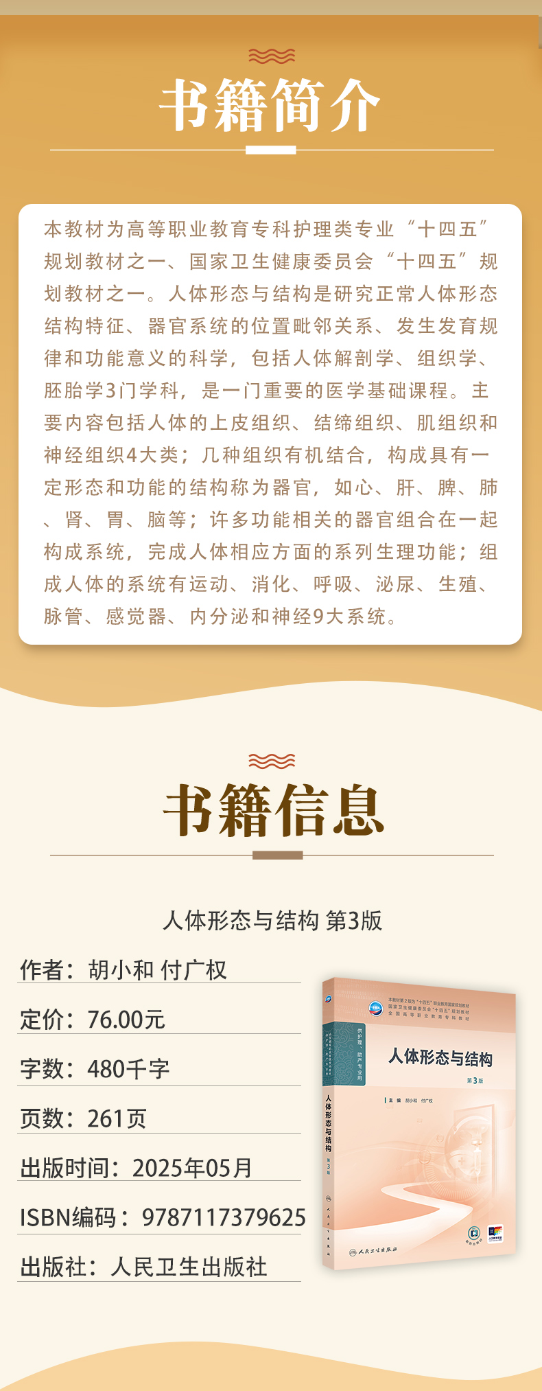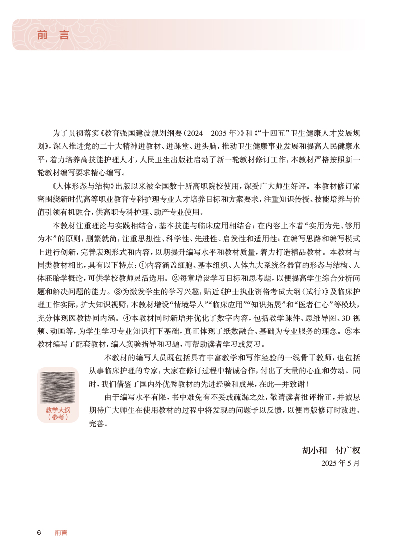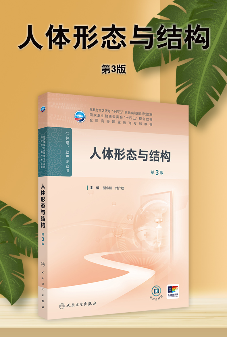 人体形态与结构 第3三版 十四五规划教材 全国高等职业教育专科教材 胡小和 付广权 主编 供护理 助产专业用 人民卫生出版社