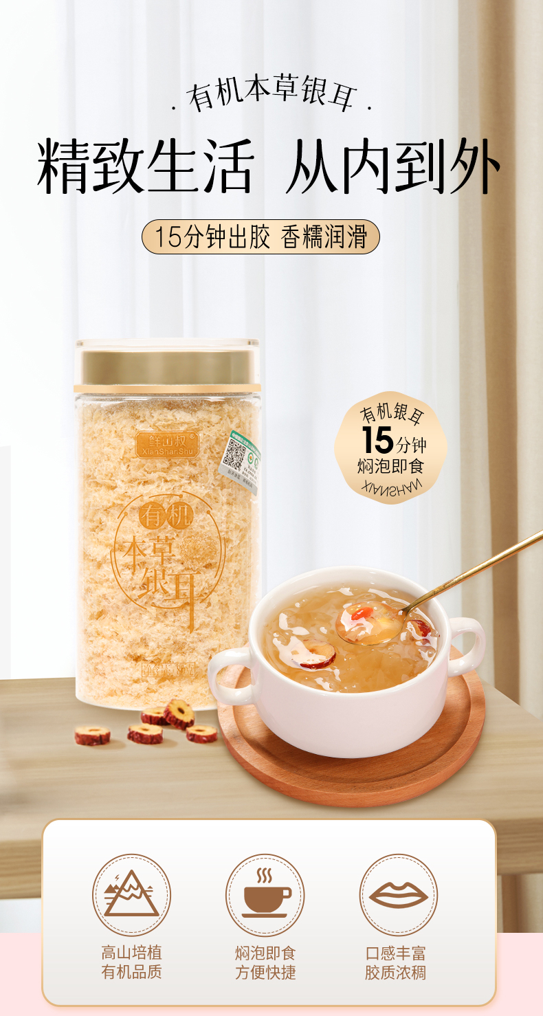 【有机】鲜山叔双有机本草银耳 免洗免煮免泡 保温杯闷20分钟即食 营养好吸收