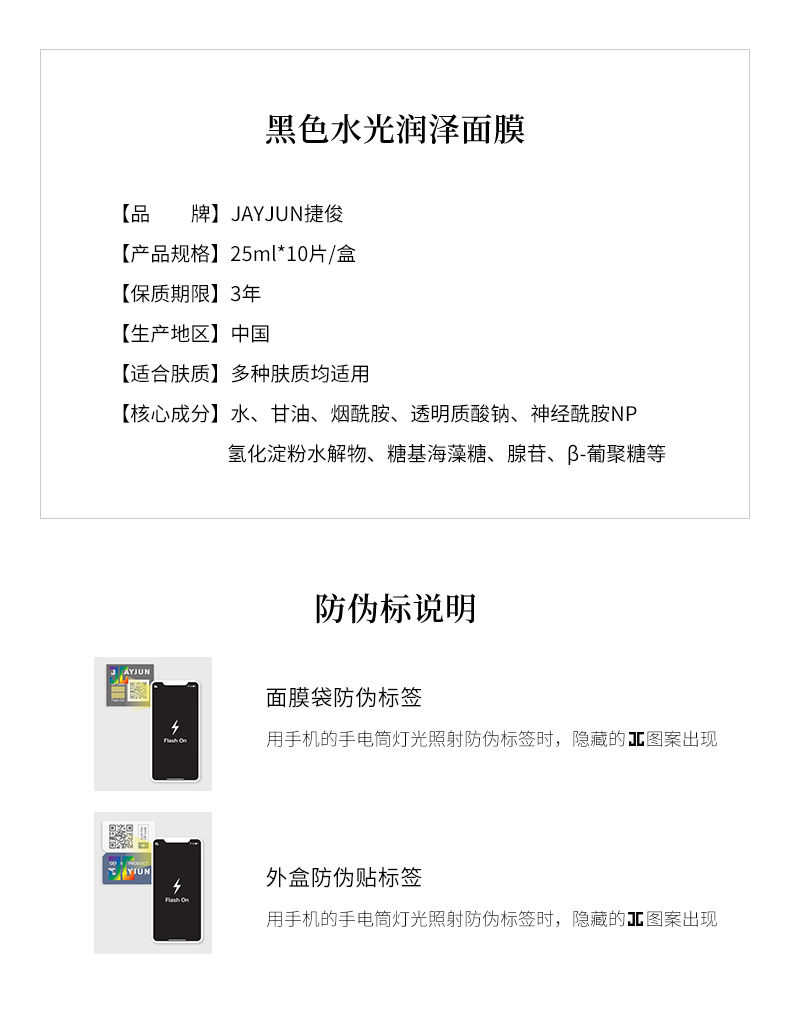 【爆款超低价预售 急单慎拍】JAYJUN捷俊水光面膜10片玻尿酸补水保湿jc黑面膜女
