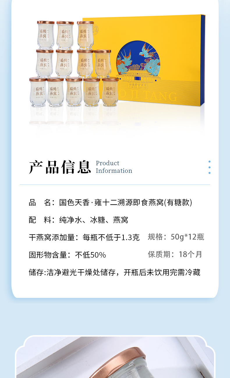 国济堂 国色天香.雍十二 溯源即食燕窝礼盒 50g*12瓶