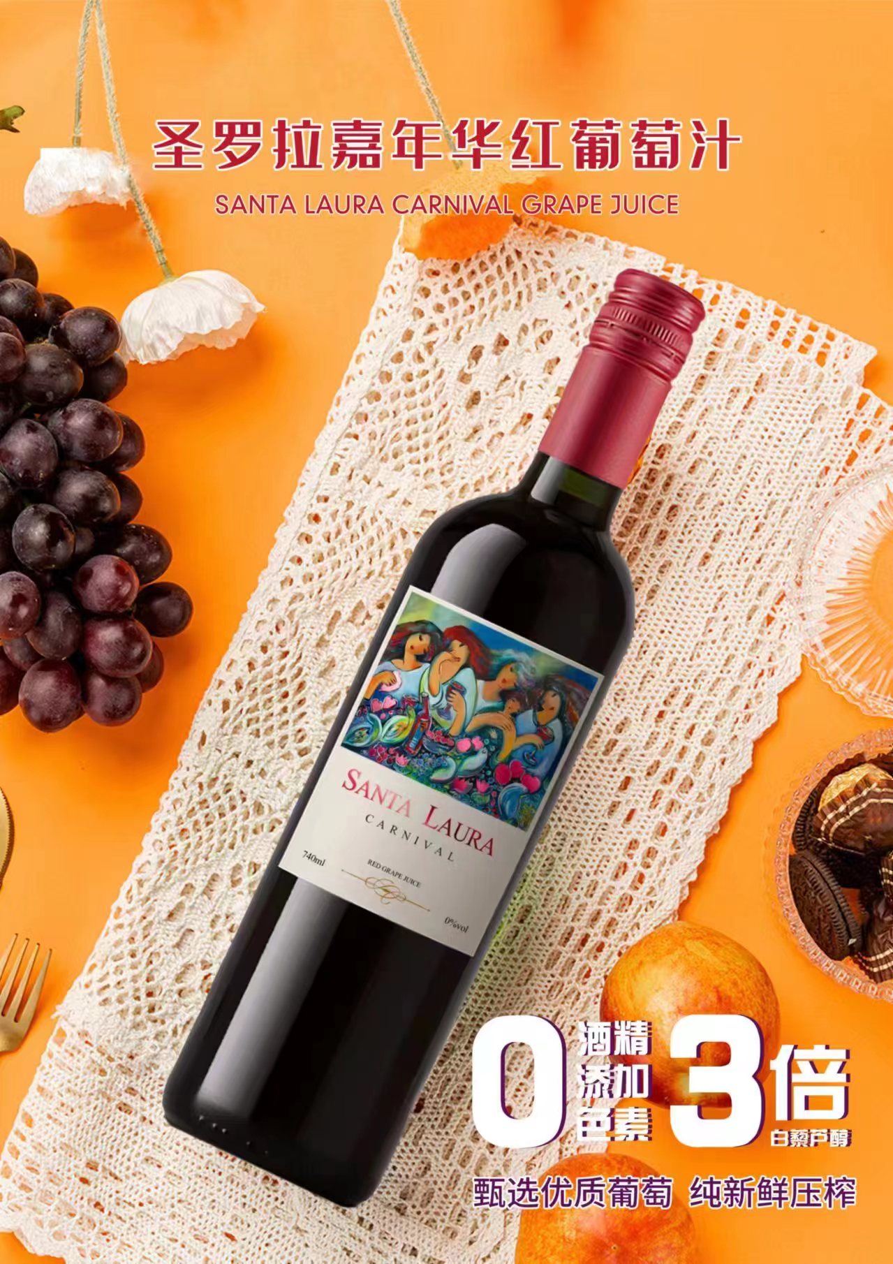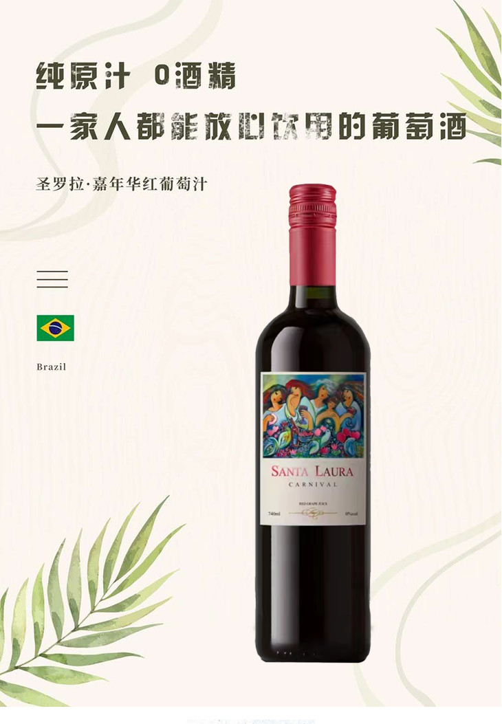 巴西高乔山谷进口 纯葡萄汁 无添加740ml 0酒精度六支装