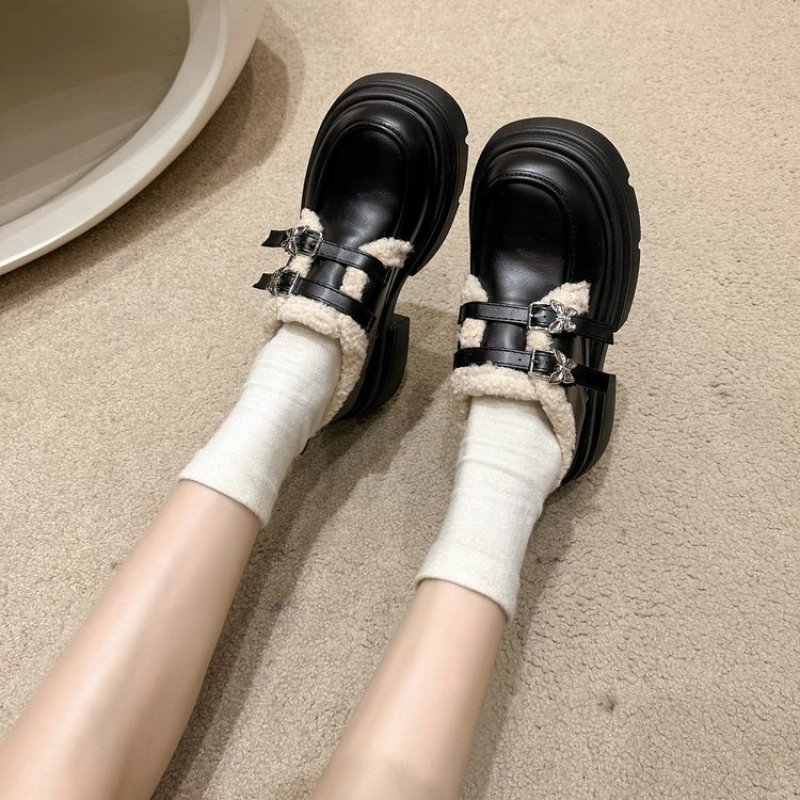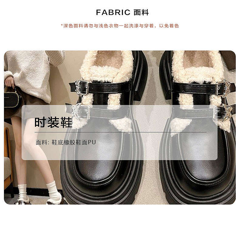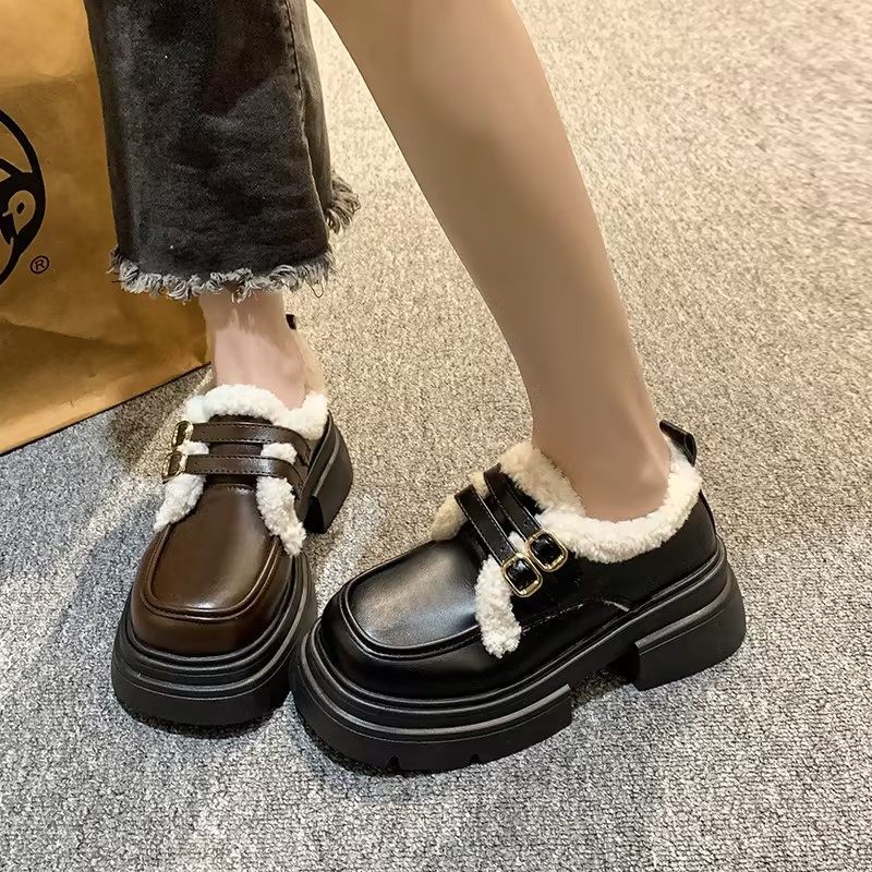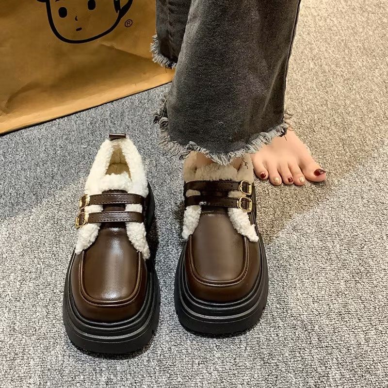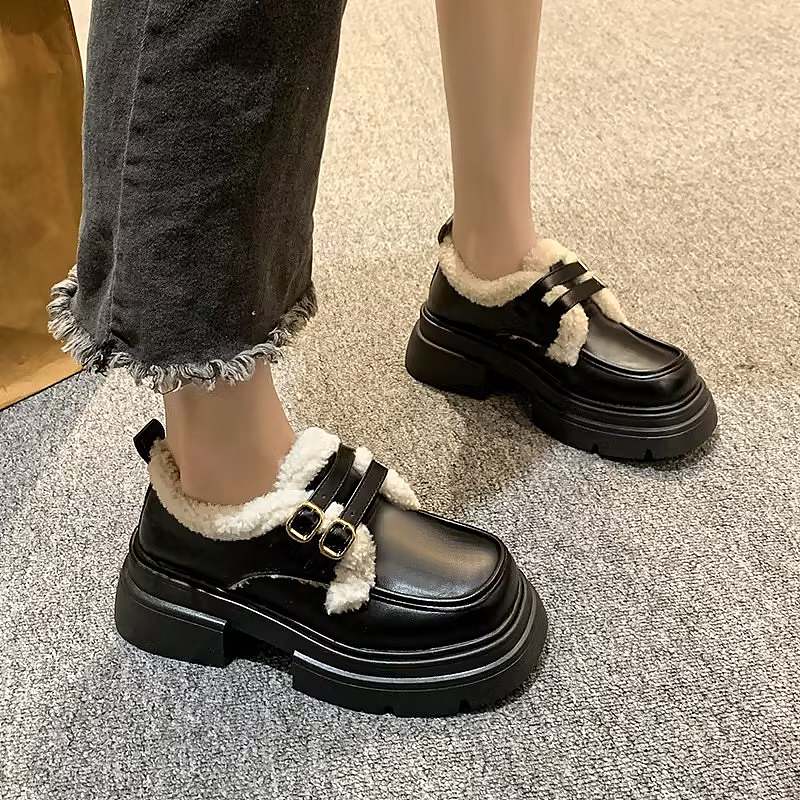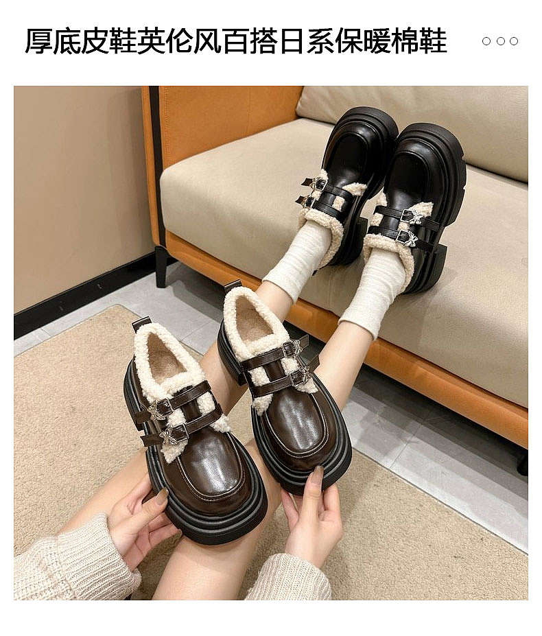 【YW】无忧购新款加绒厚底皮鞋英伦风百搭日系保暖棉鞋单鞋(截单后3-5天发货)