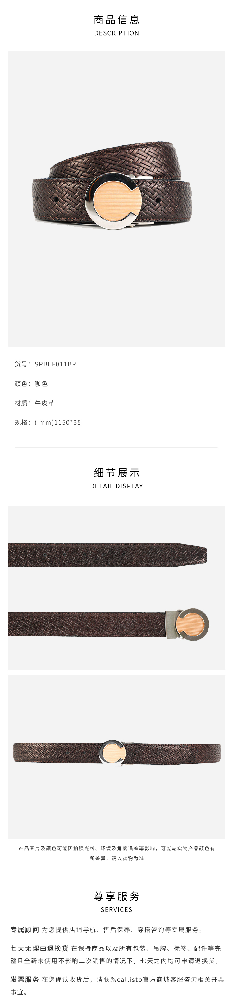callisto黑色牛皮革皮带 SPBLF011BR