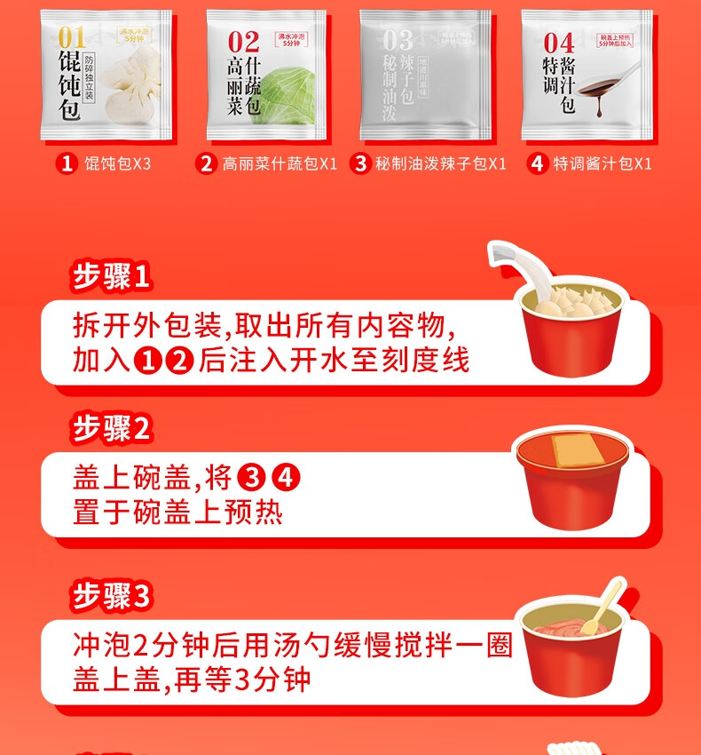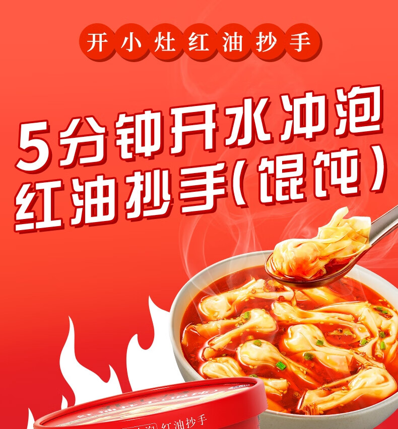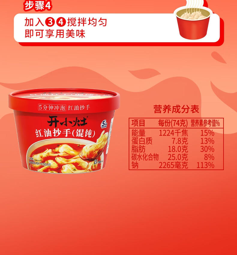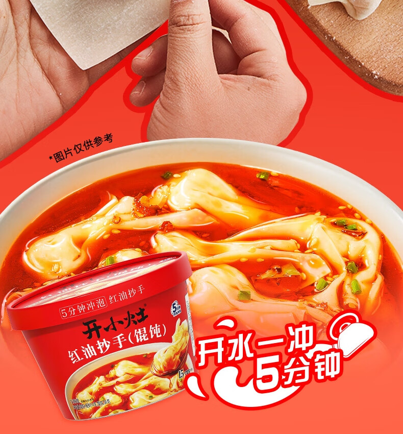 【统一】冲泡馄饨 统一开小灶冲泡小馄饨(红油抄手)74g/碗 6碗/箱 1箱(6个月)