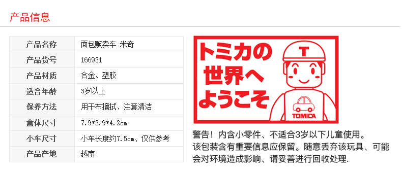 多美卡 Tomica#DM-03米奇面包贩卖车TMSC166931