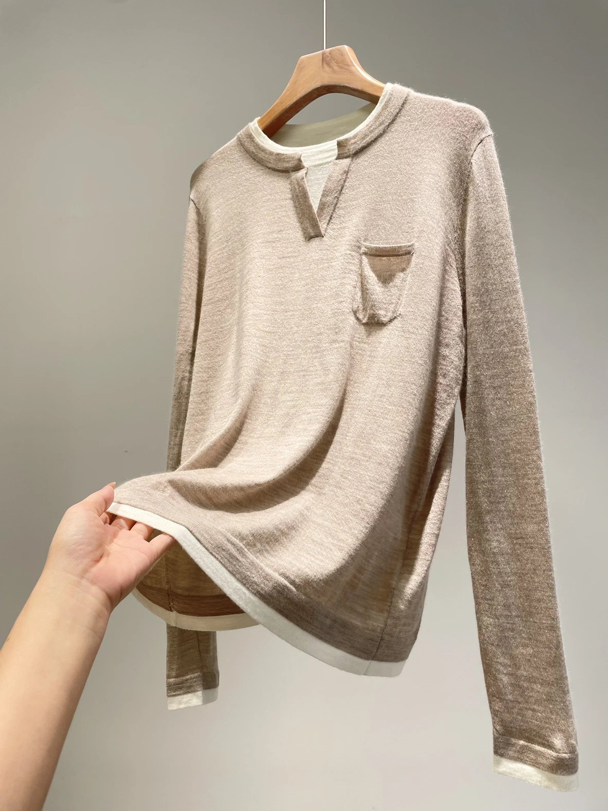 按头安利! 亨利领假两件针织衫 鄂尔家经典款!100超细精纺羊绒