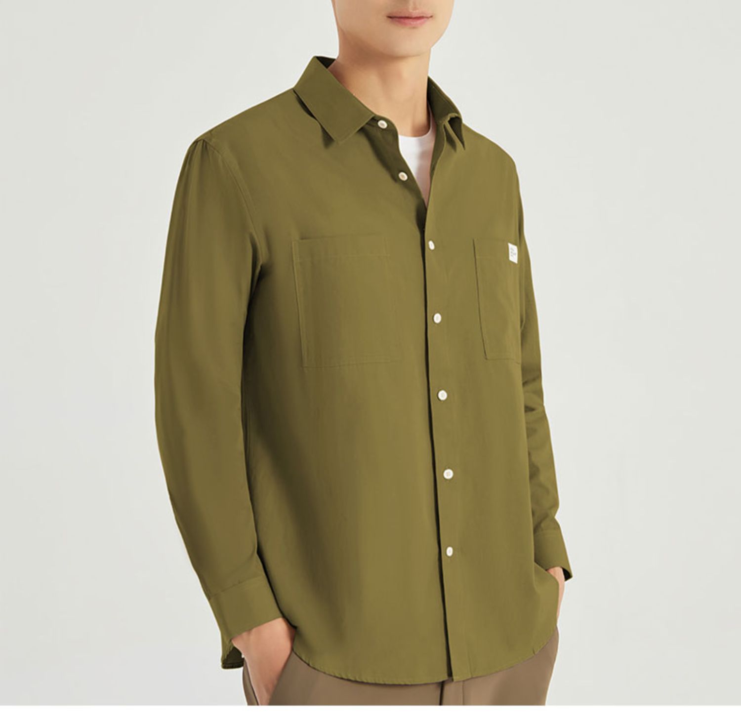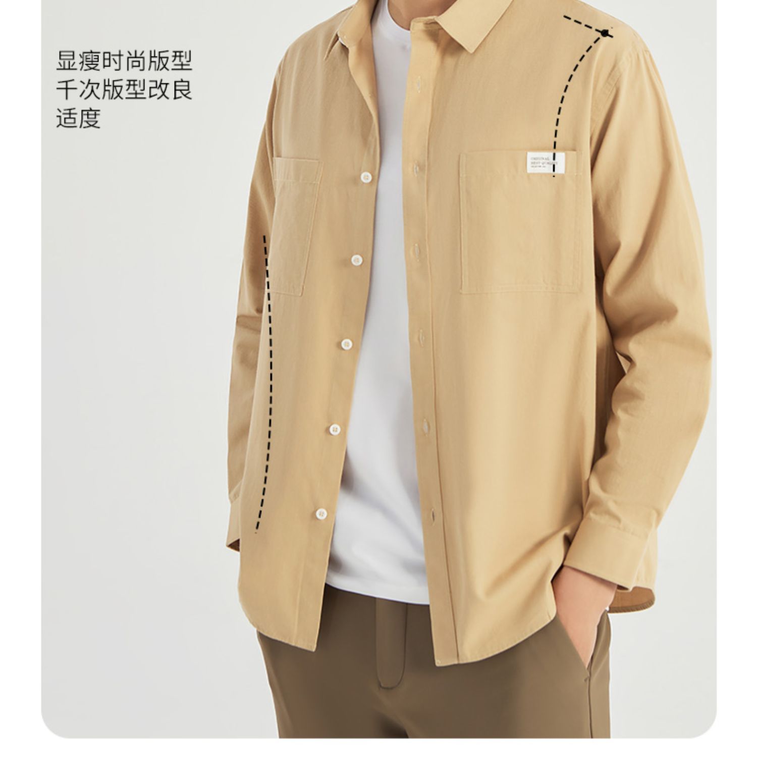 【100%棉】圣得西年春季男士中青年胸前口袋商务长袖衬衫