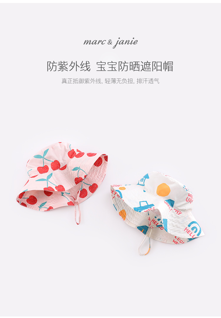 【防紫外线】马克珍妮男女童儿童渔夫帽婴儿宝宝防晒遮阳帽220308