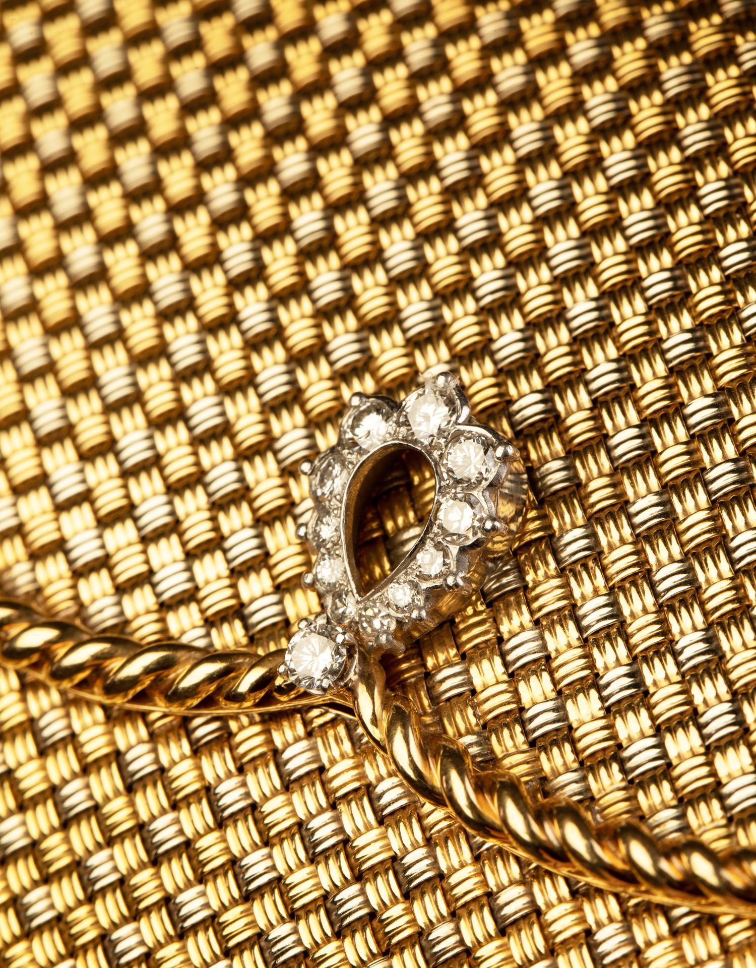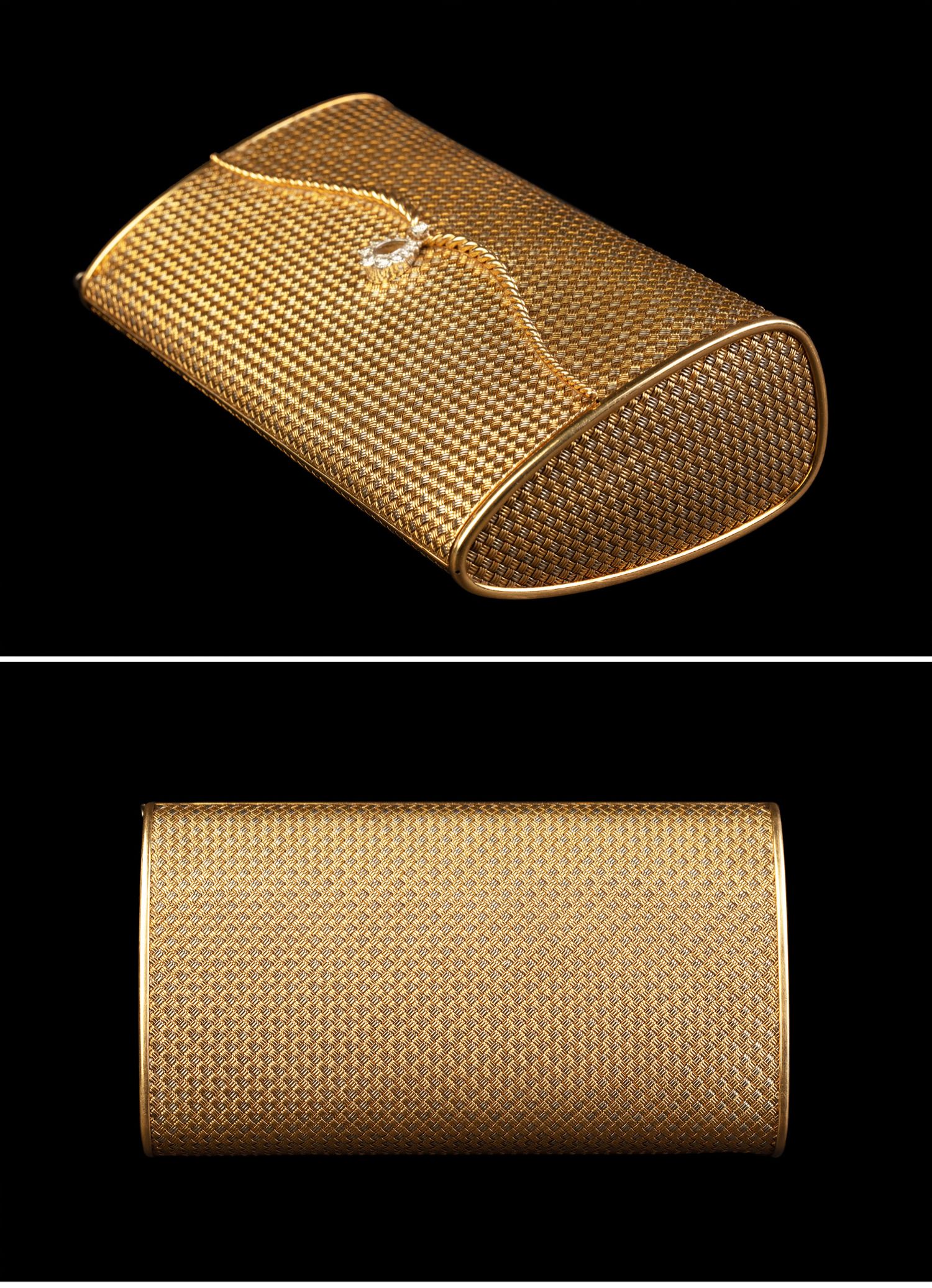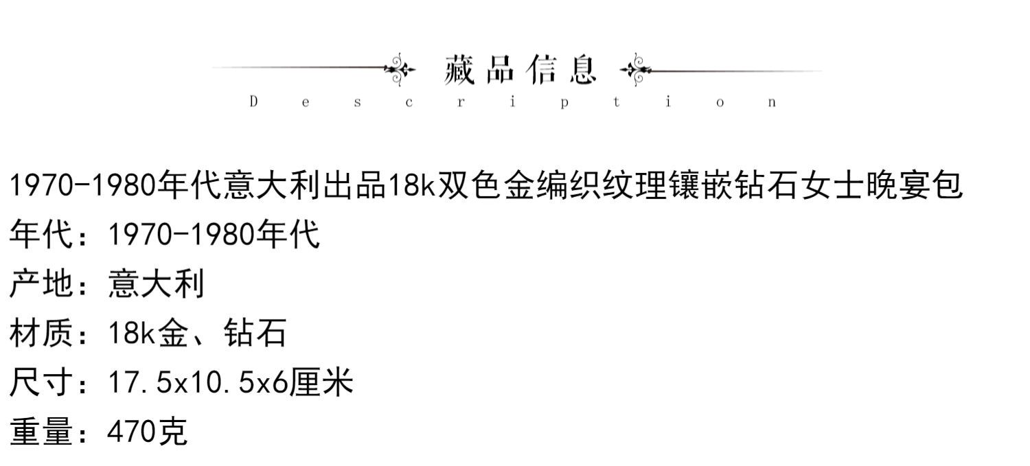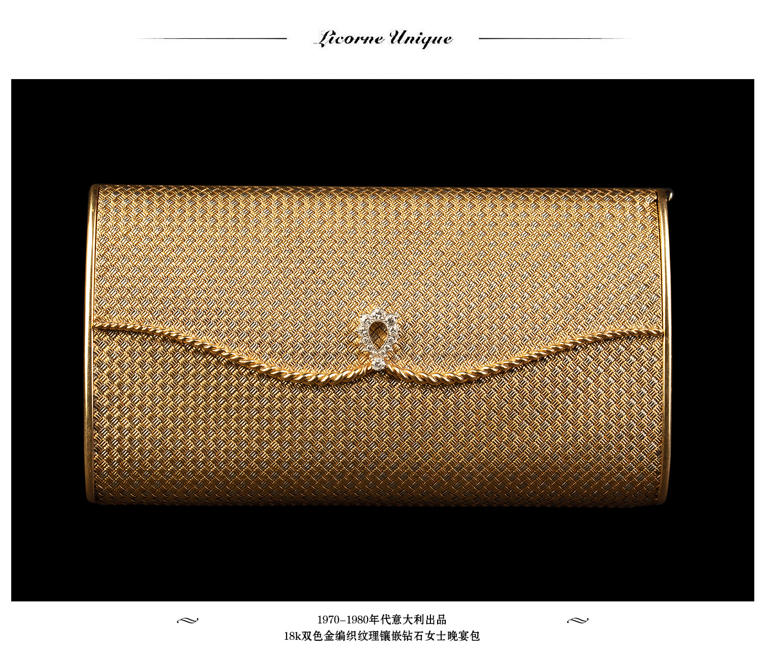 独角鹿西洋古董意大利18K双色金编织纹理镶嵌钻石女士晚宴包
