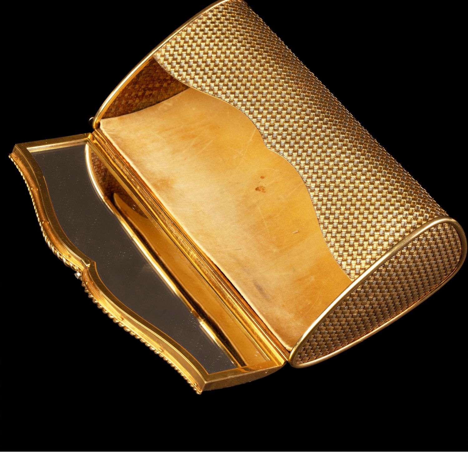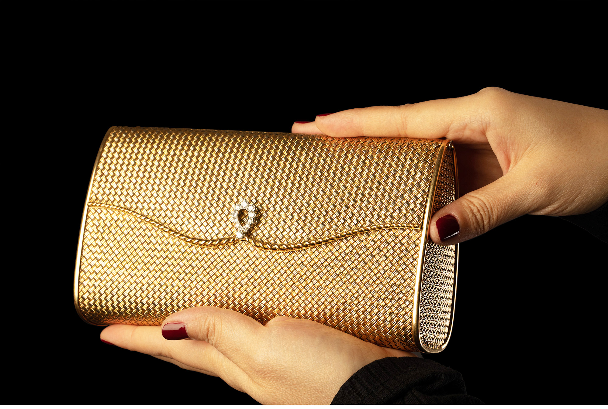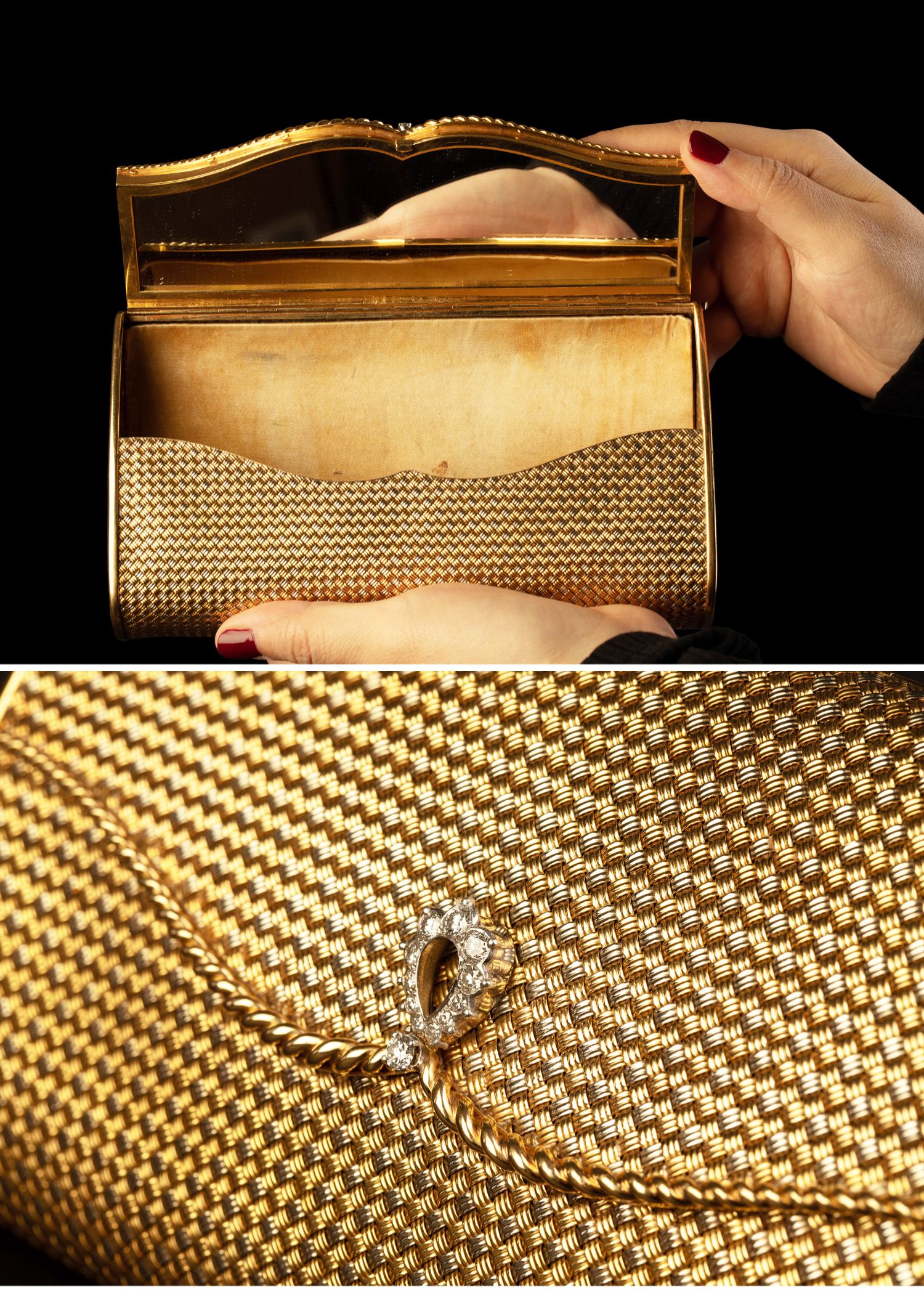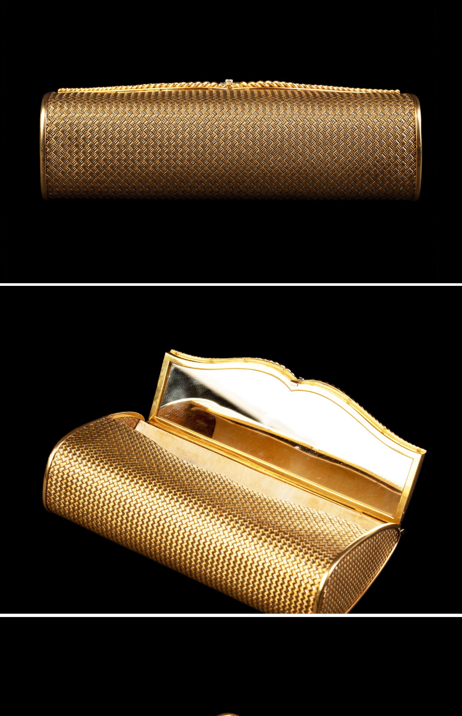 独角鹿西洋古董意大利18K双色金编织纹理镶嵌钻石女士晚宴包