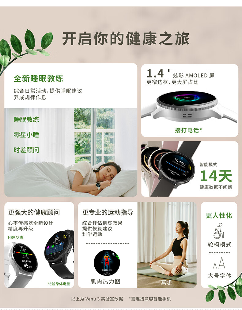 佳明(GARMIN)Venu3运动音乐腕表 电话手表 运动手表 户外手表 音乐手表 新品上市