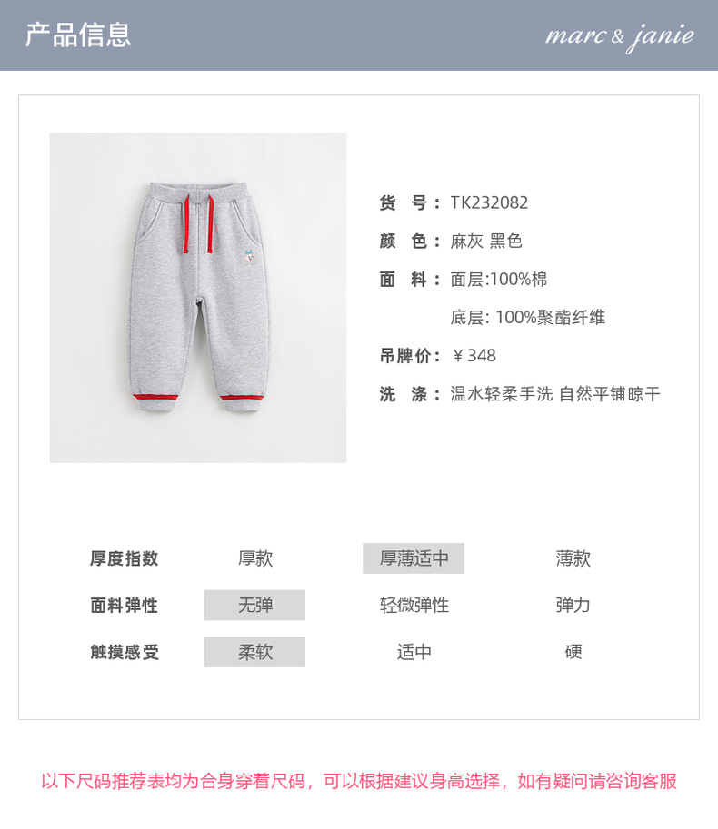【加绒】马克珍妮女童小龙人保暖束脚运动裤 儿童冬装裤子232082
