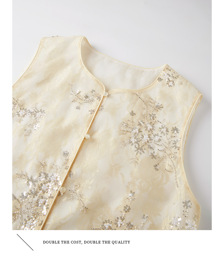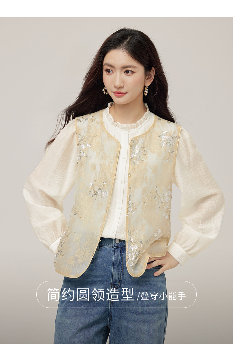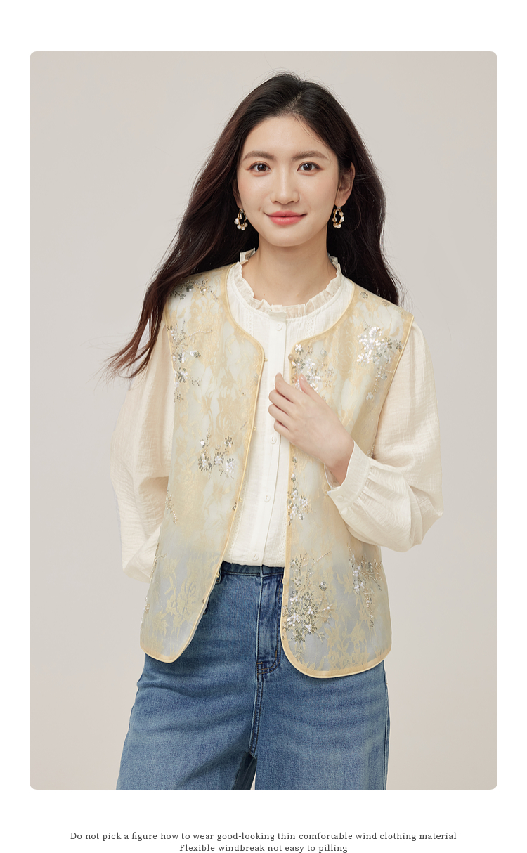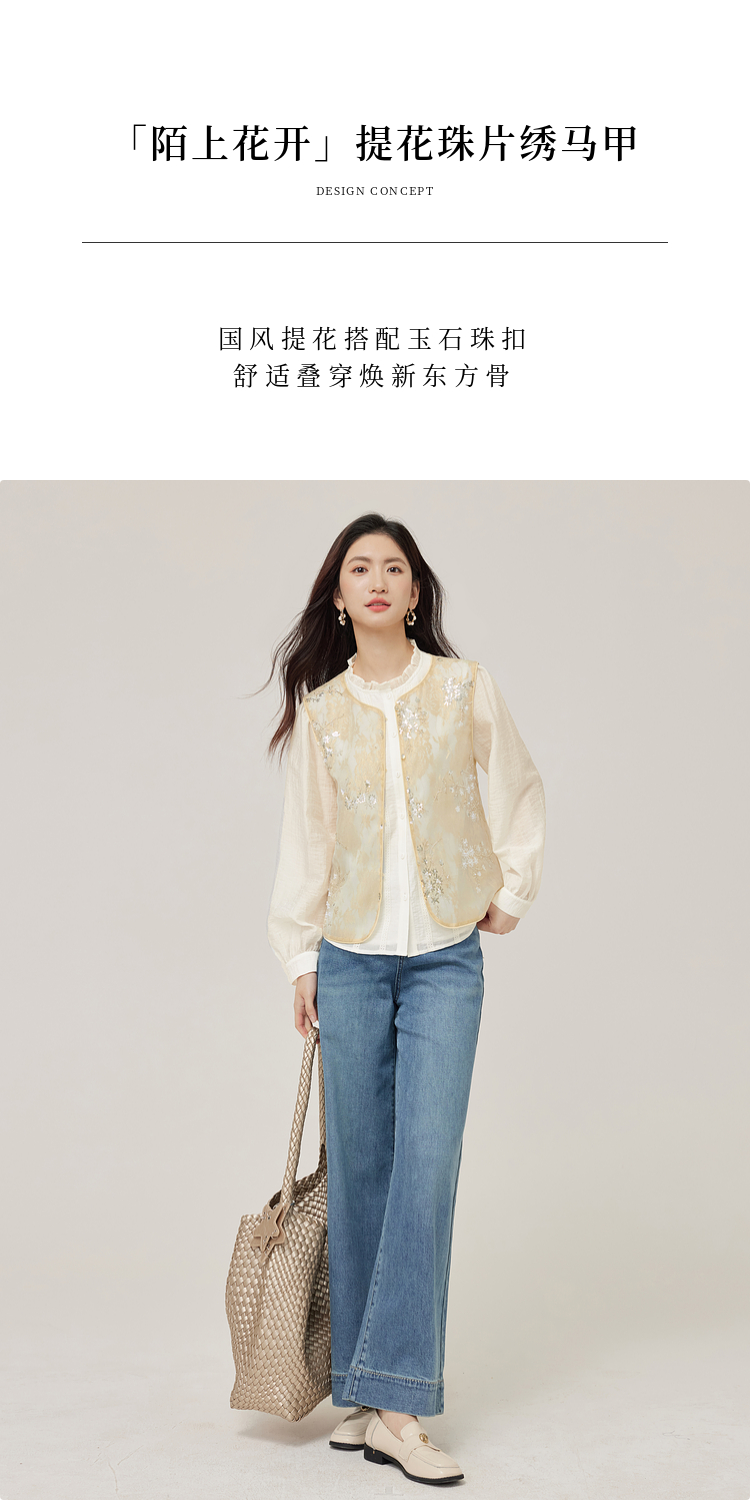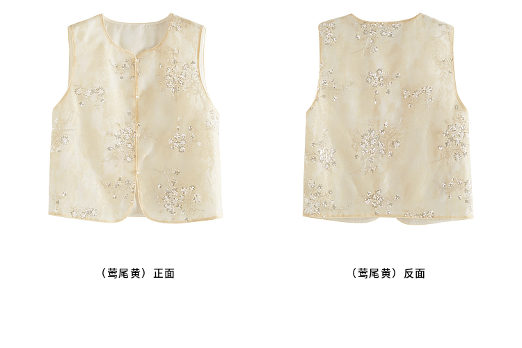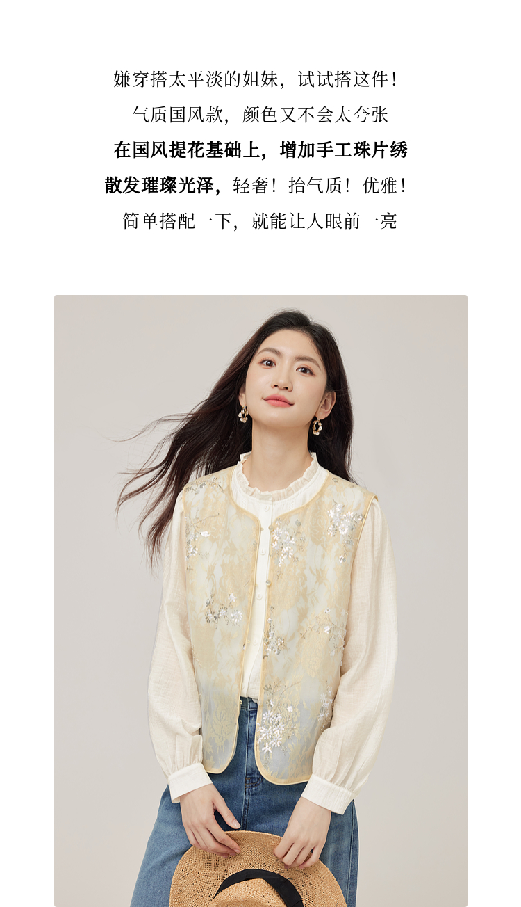【08/12新品】熙世界新中式提花珠片绣马甲女2025初秋新款气质国风无袖背心外套