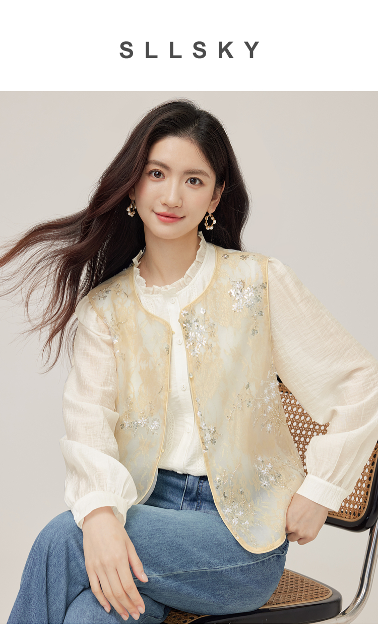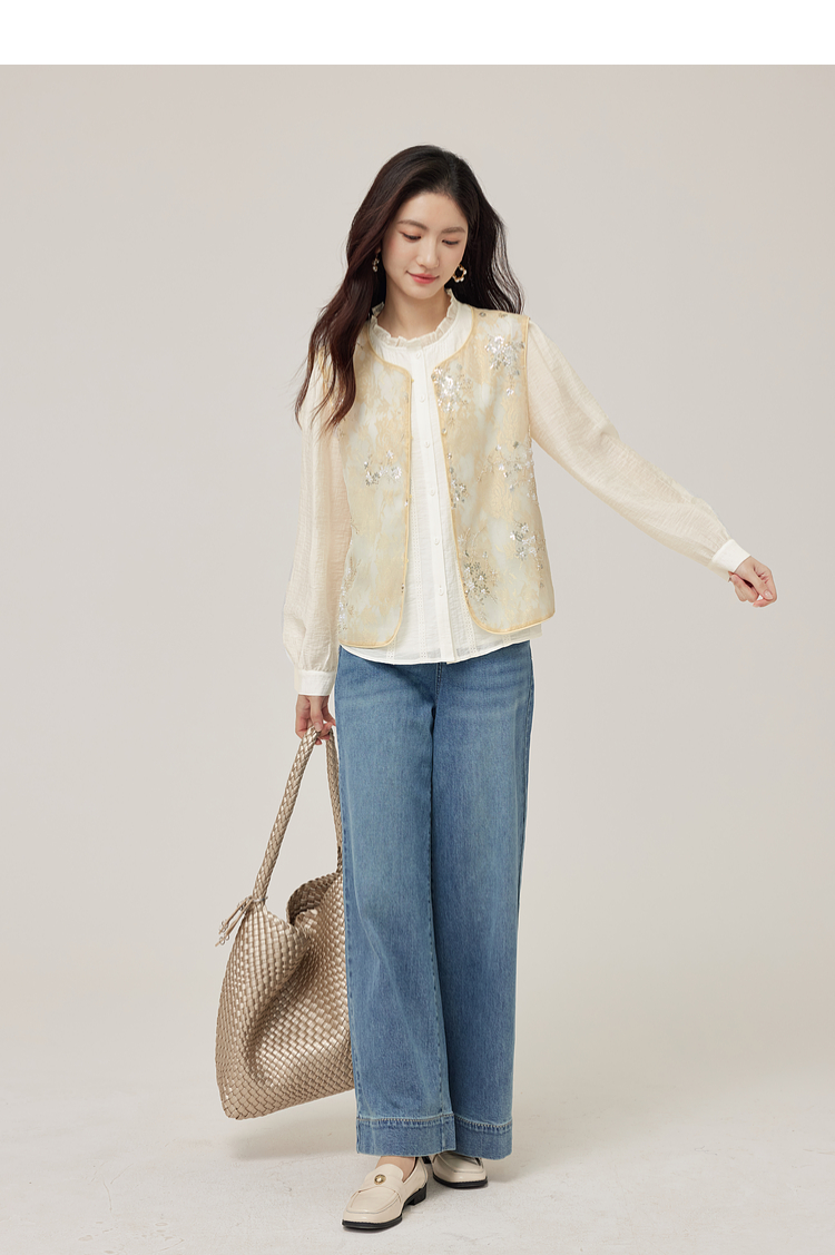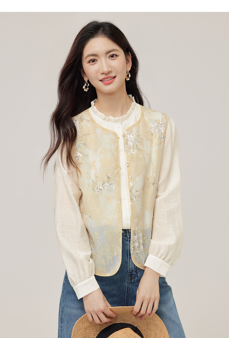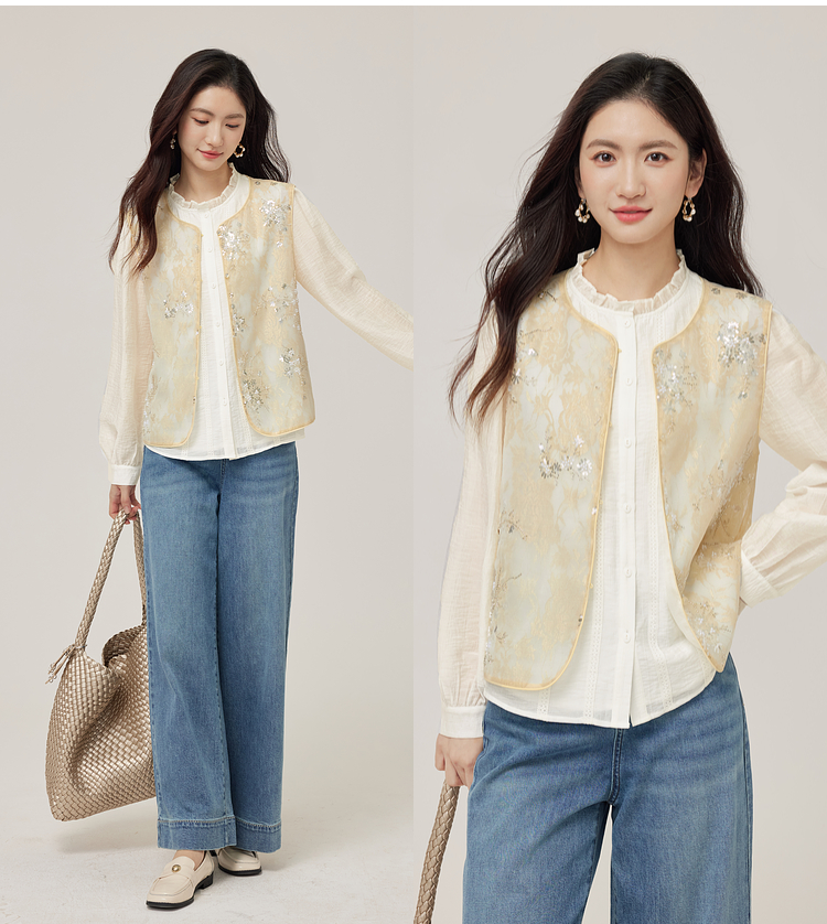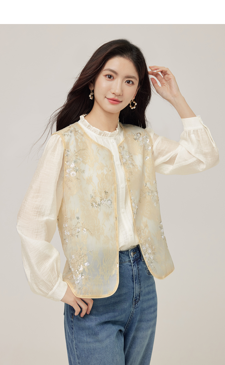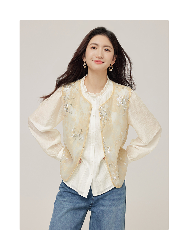 【08/12新品】熙世界新中式提花珠片绣马甲女2025初秋新款气质国风无袖背心外套