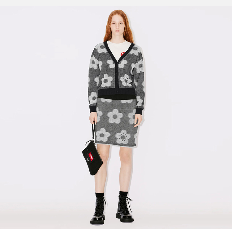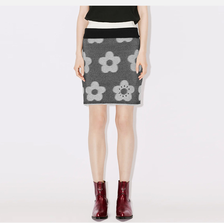 KENZO 高田贤三 女士花斑提花双面迷你半身裙 黑色 FD62 JU413 3CA 99J