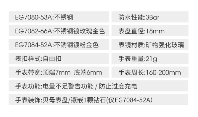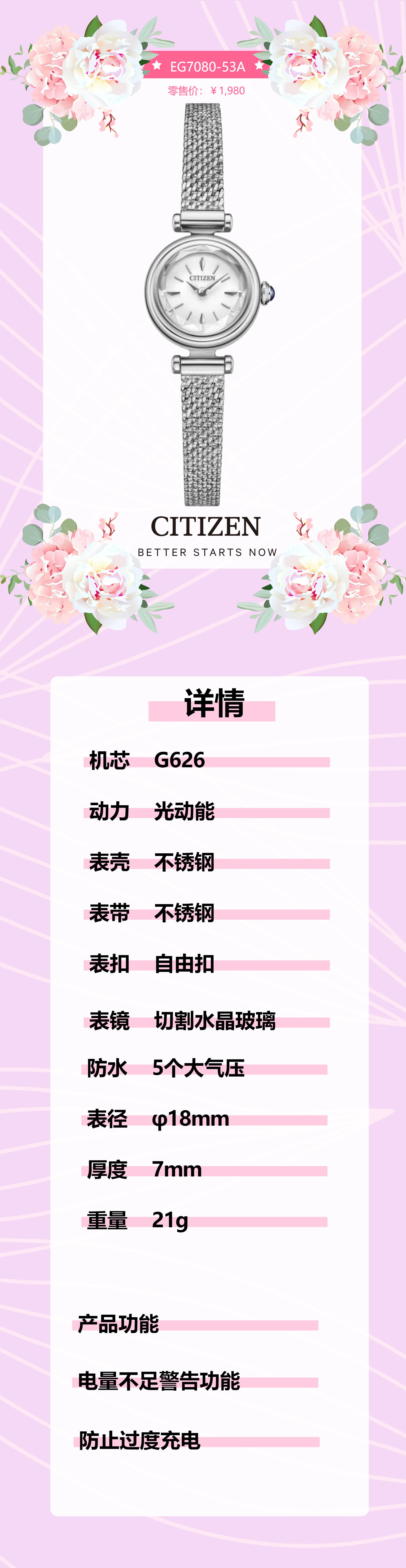 西铁城切割水晶玻璃女款腕表EG7080-53A