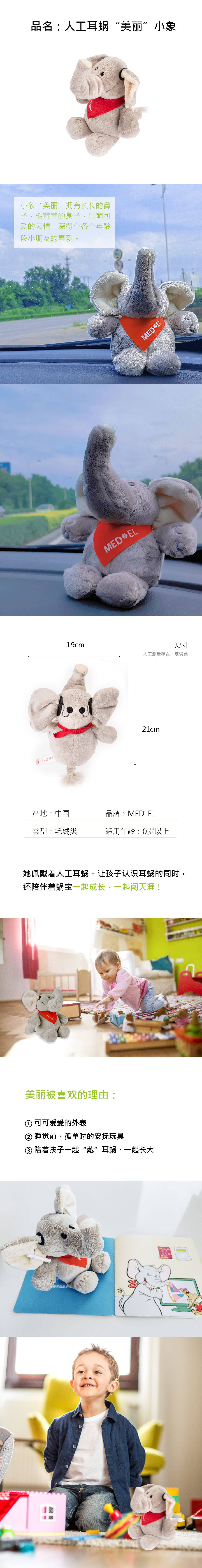 人工耳蜗“美丽”小象” 毛绒玩偶