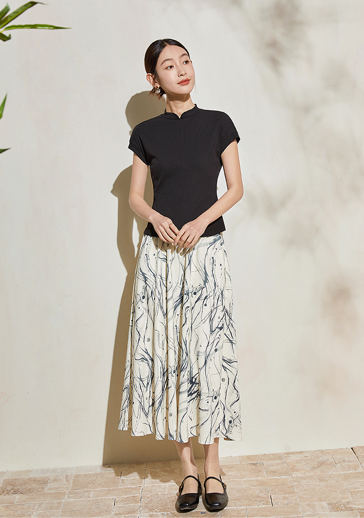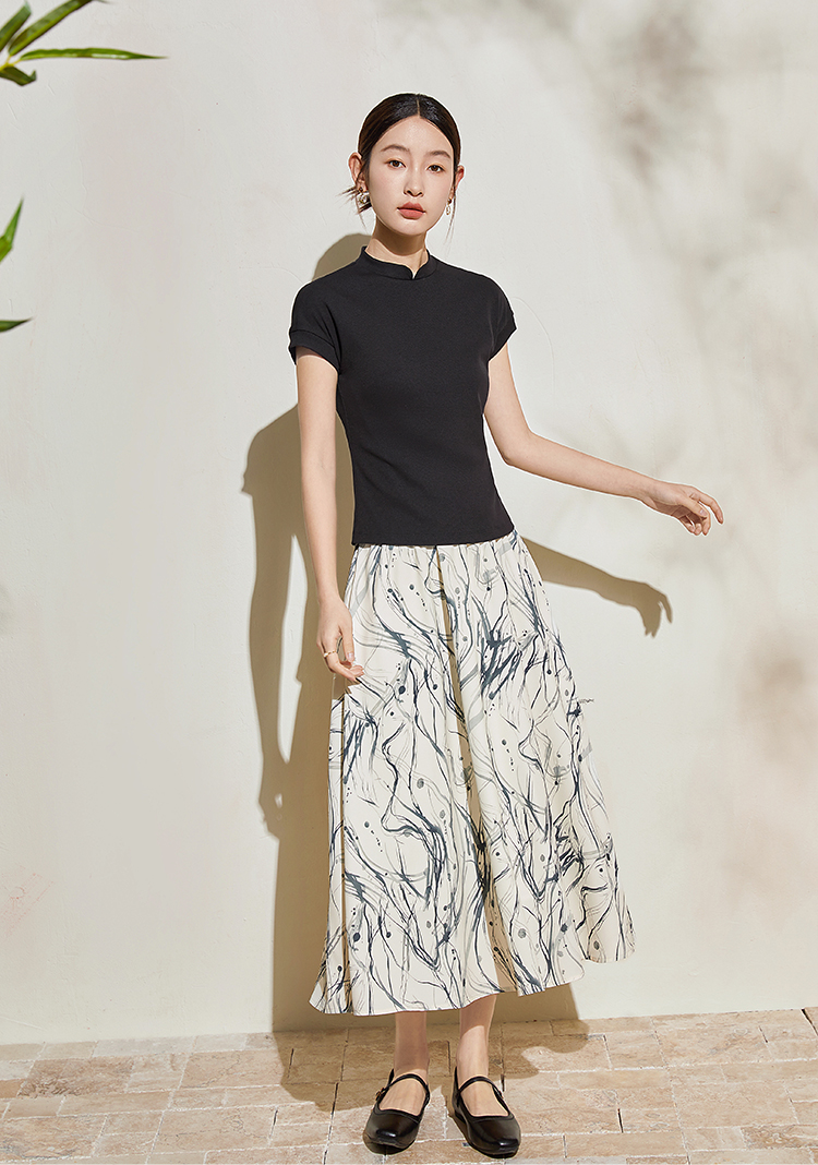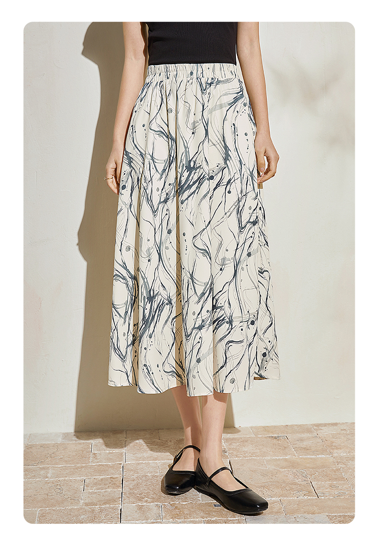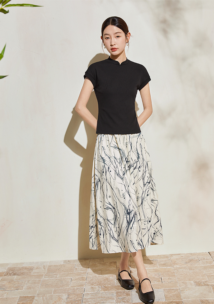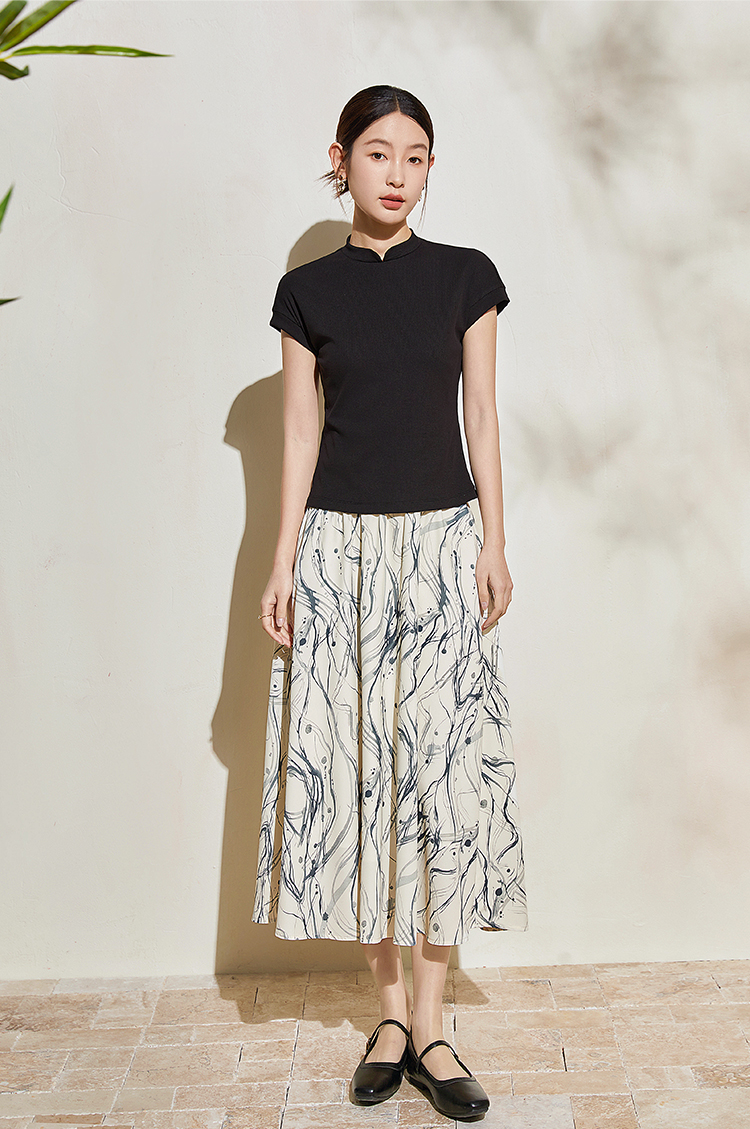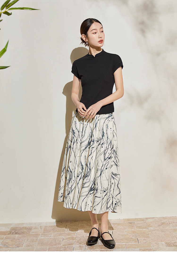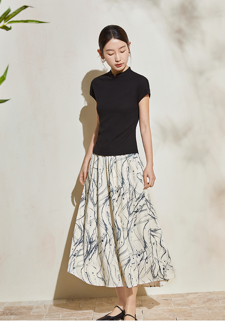【五折购】熙世界新中式半身裙女2025夏款水墨印花国风半裙