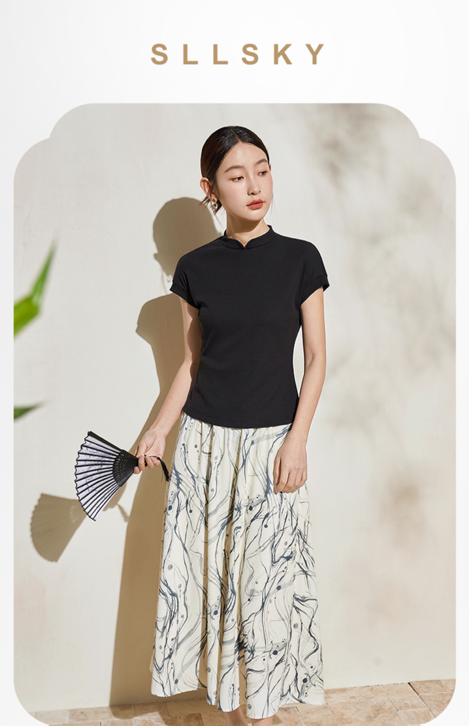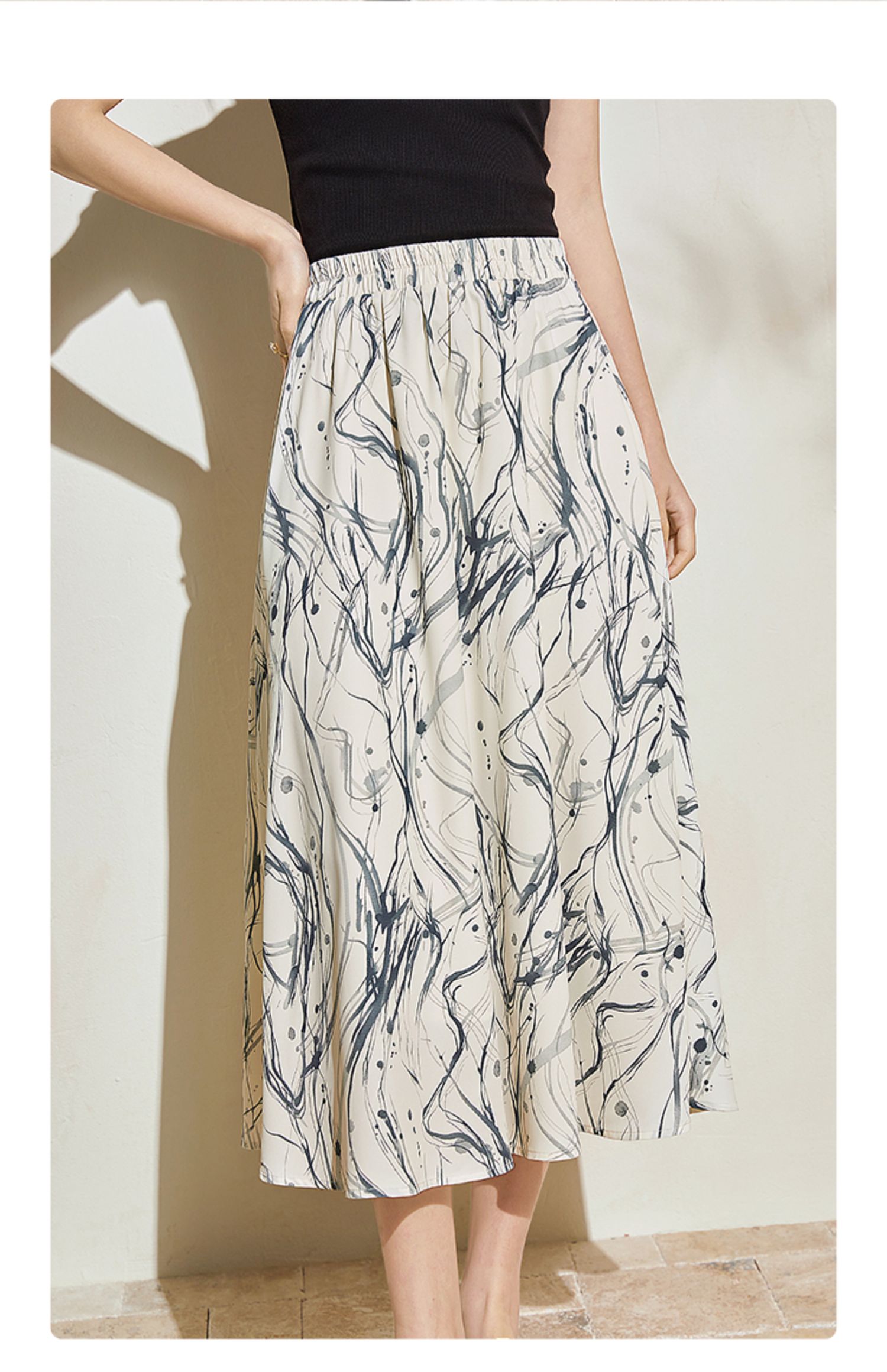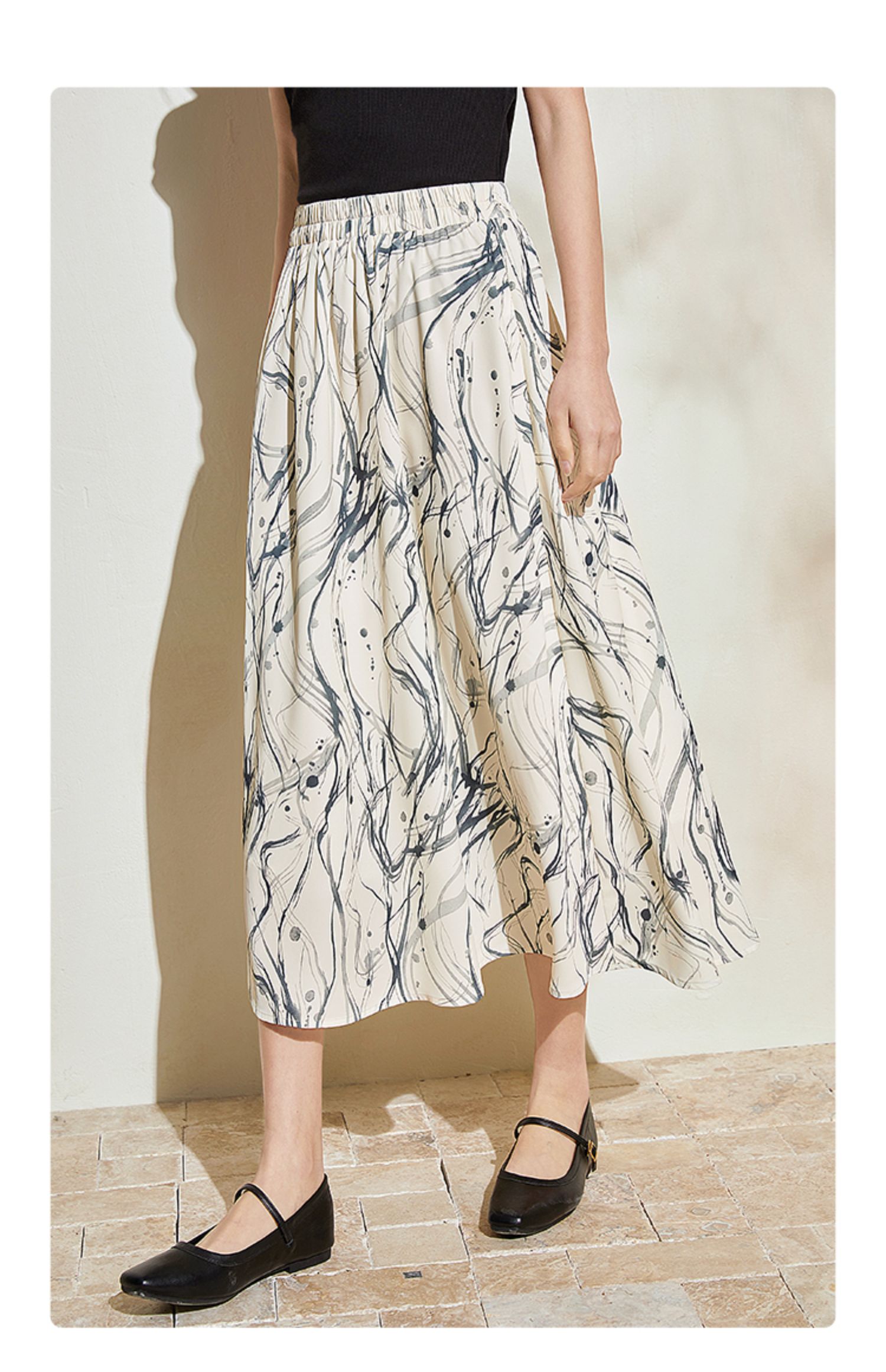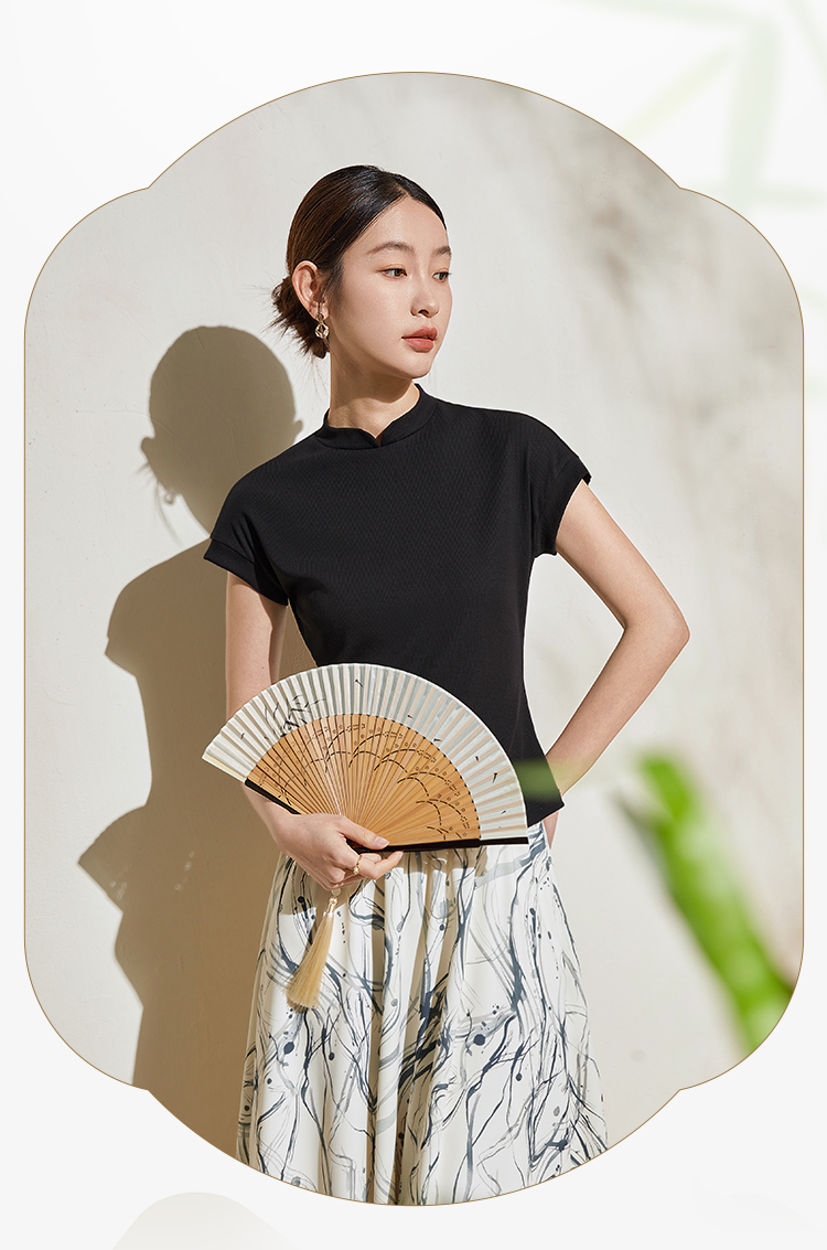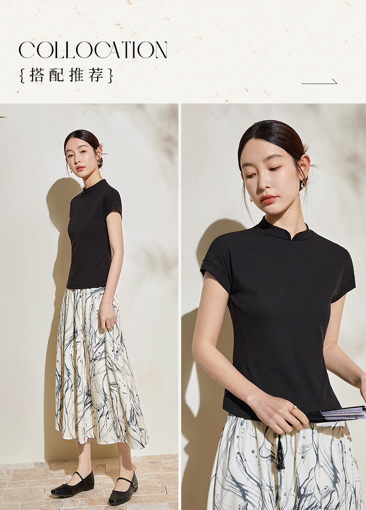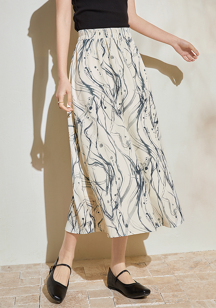 【五折购】熙世界新中式半身裙女2025夏款水墨印花国风半裙