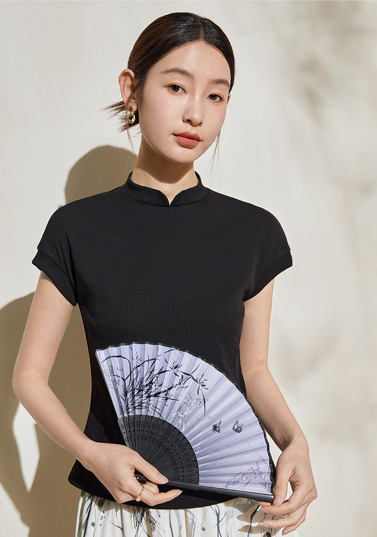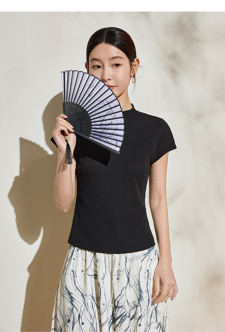 【专属特价】熙世界轻民族国风纹样绣花T恤短袖女设计感圆领上衣2025夏日新款