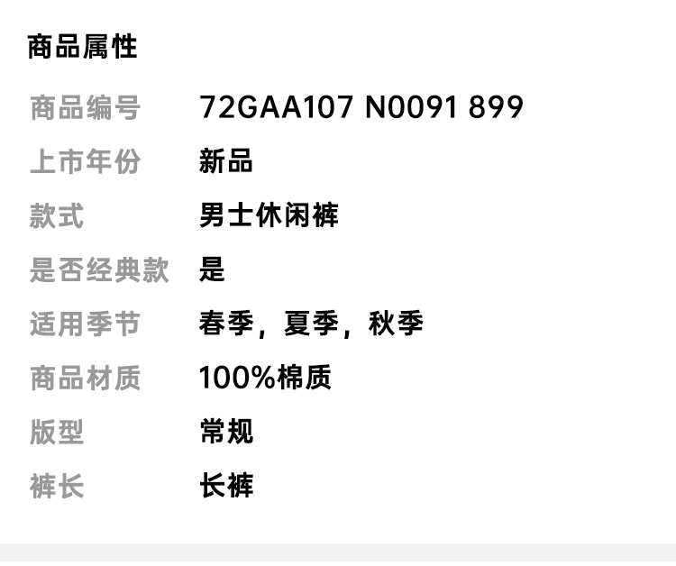 VERSACE JEANS COUTURE 范思哲 男士棉质缝合徽标休闲裤 黑色 72GAA107 N0091 899