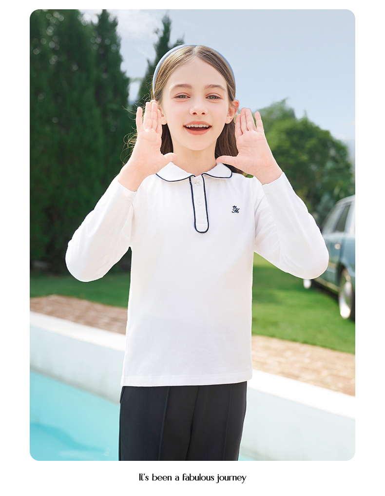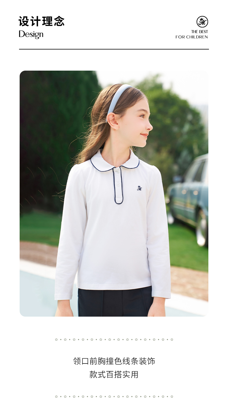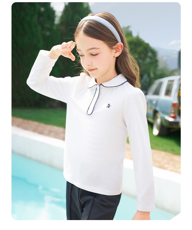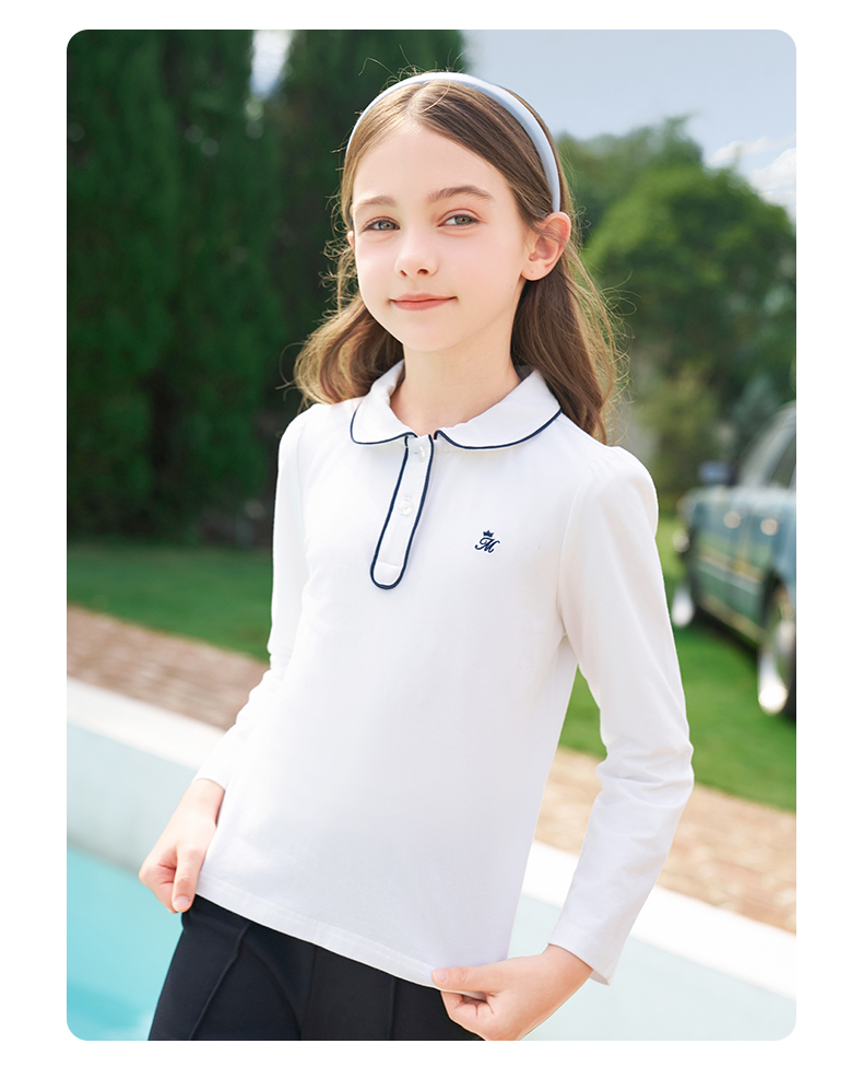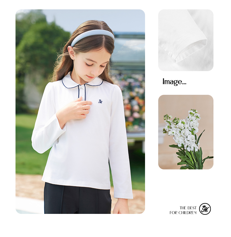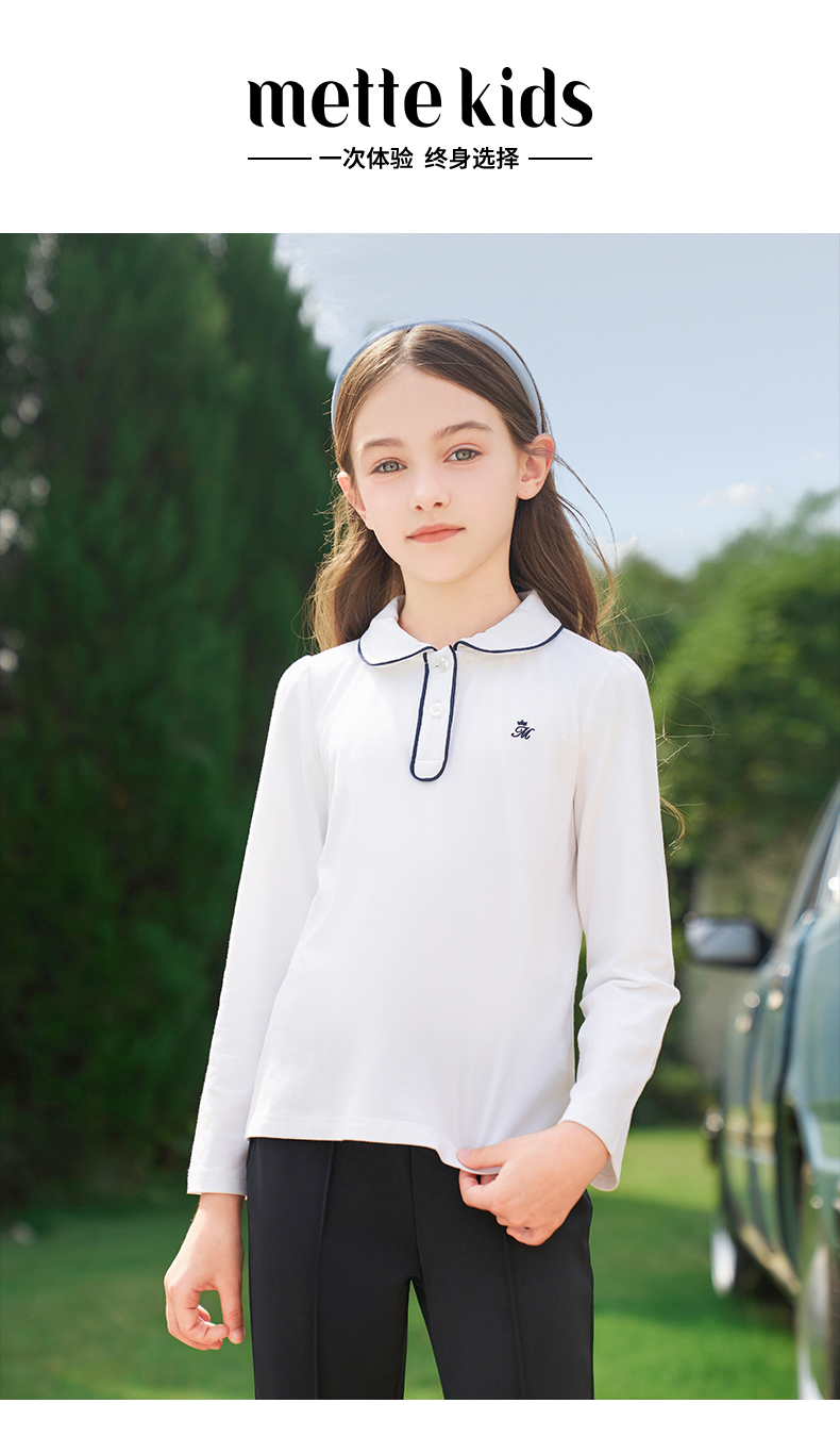 mettekids女童长袖T恤2024春秋白色休闲童装儿童百搭打底衫上衣