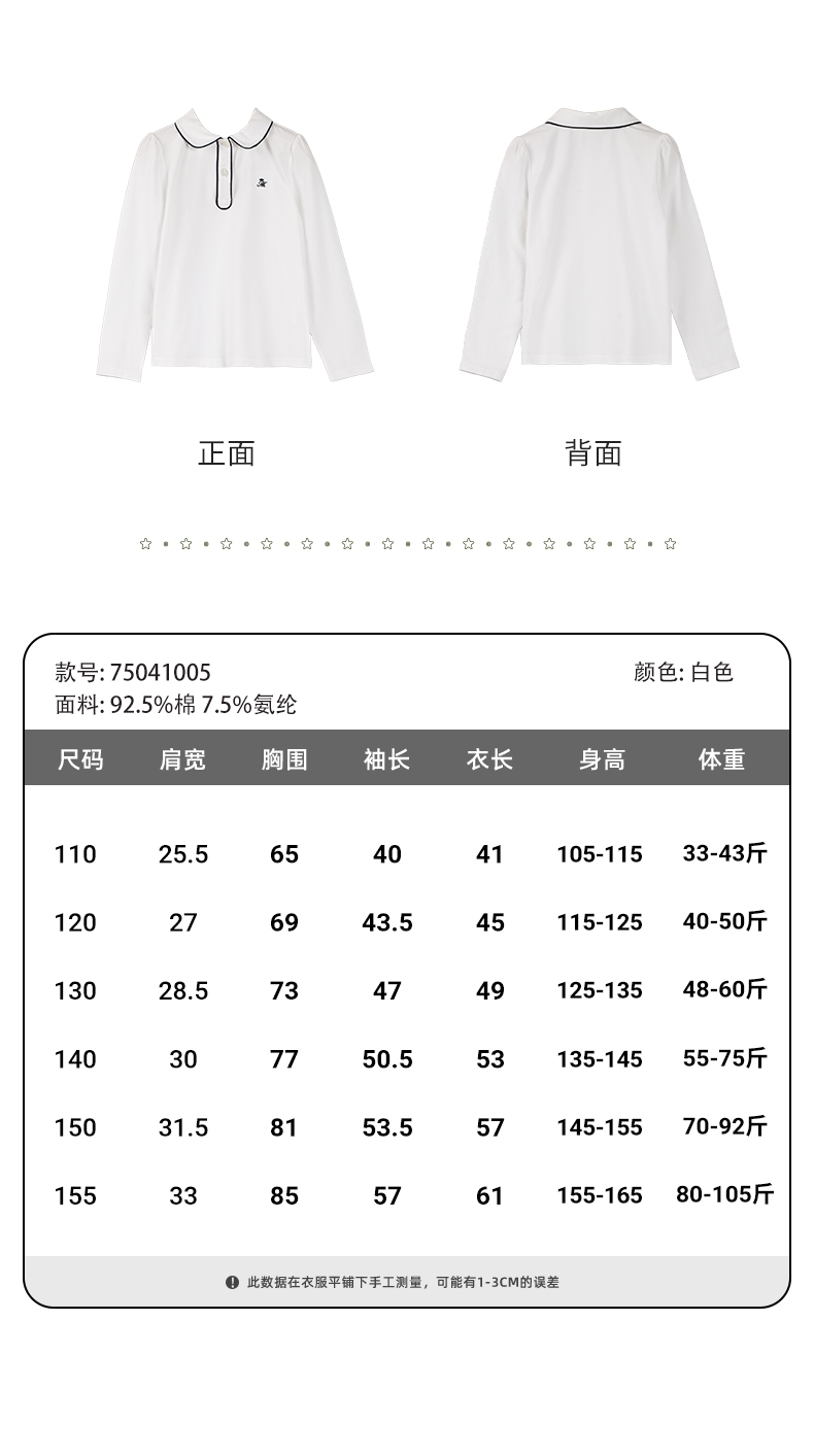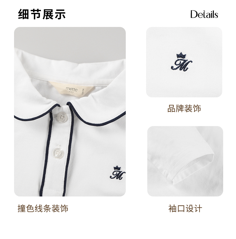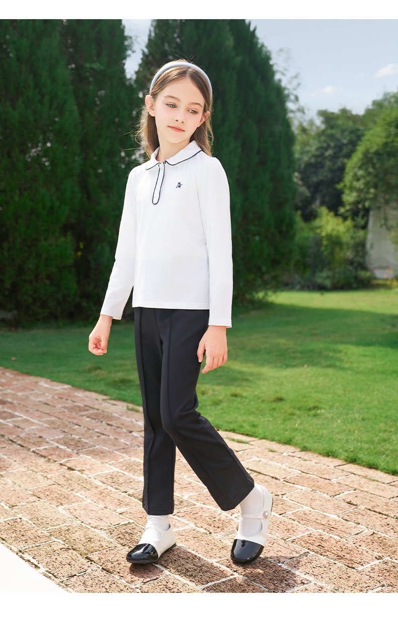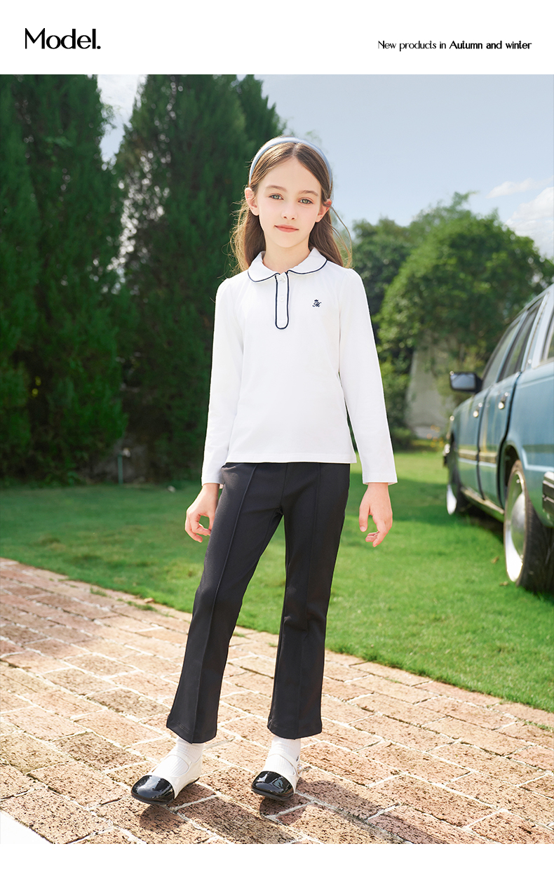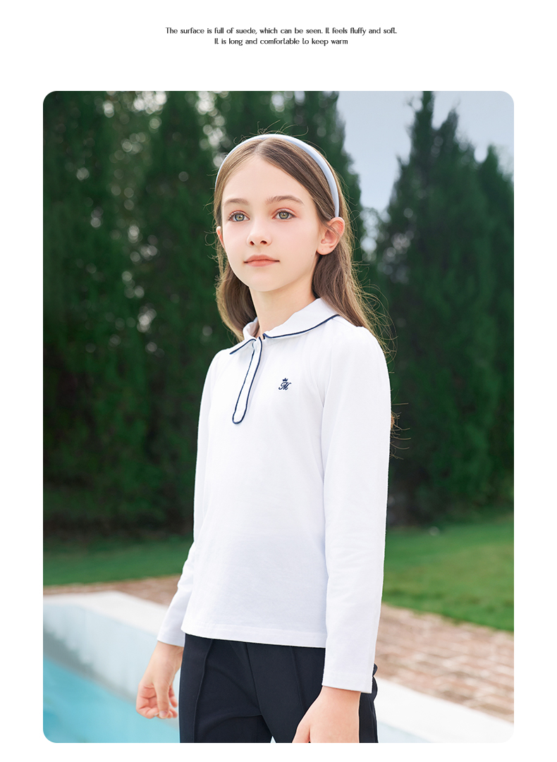 mettekids女童长袖T恤2024春秋白色休闲童装儿童百搭打底衫上衣