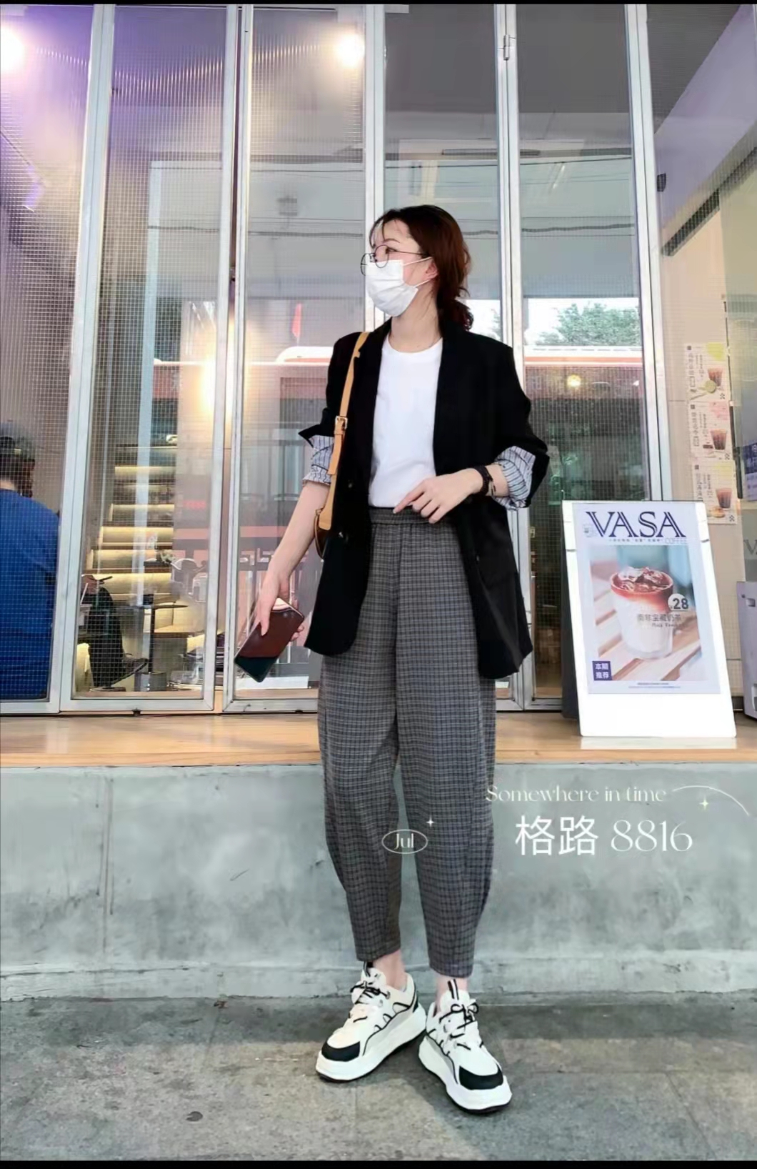 简谜时尚格子休闲裤8816