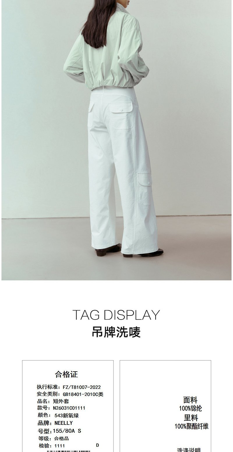 NEELLY纳俪商场同款春新款休闲清新立领短夹克女减龄休闲百搭外套N26031C01111