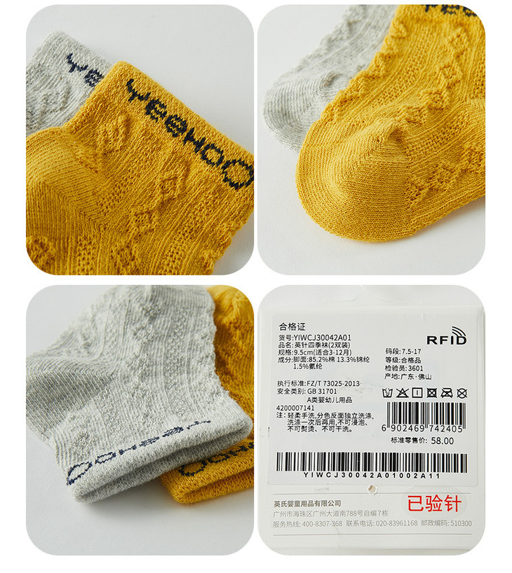 英氏婴儿棉袜 男女宝秋冬新品四季短袜2双装 YIWCJ30042A01 YIWCJ30043A01