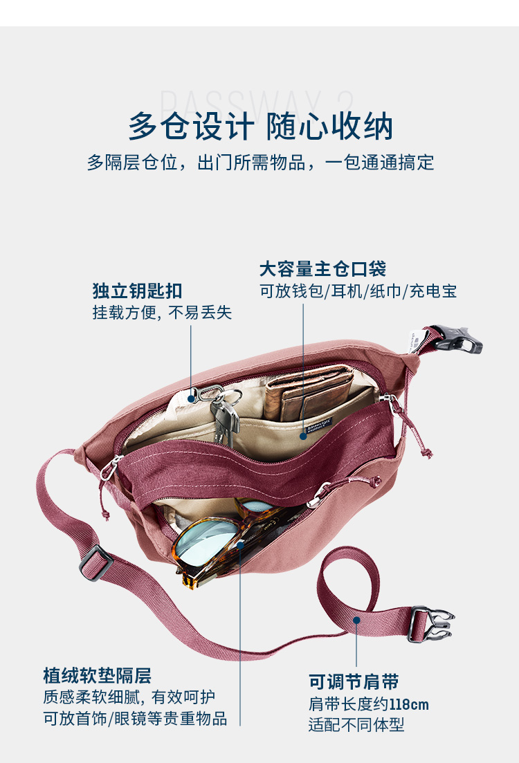 德国多特deuter旅途城市休闲通勤斜挎包 Passway2L男女纯色胸前包