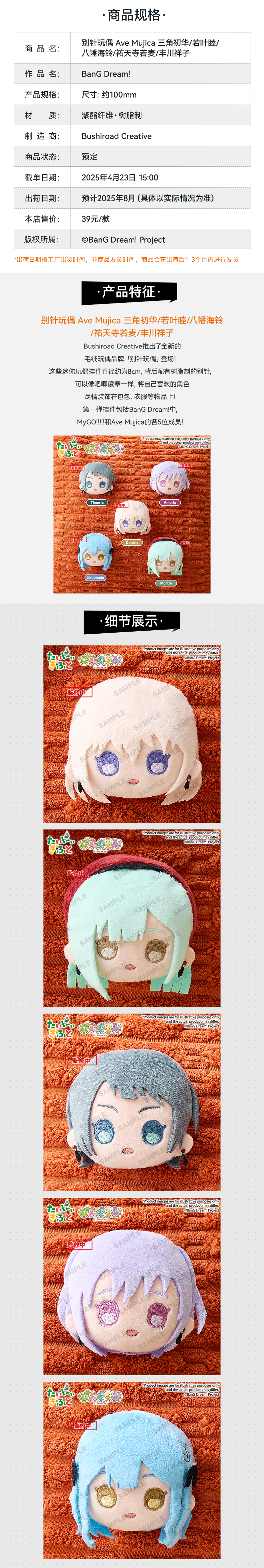 【GSC补款】别针玩偶 Ave Mujica 三角初华/若叶睦/八幡海铃/祐天寺若麦/丰川祥子 BanG Dream!