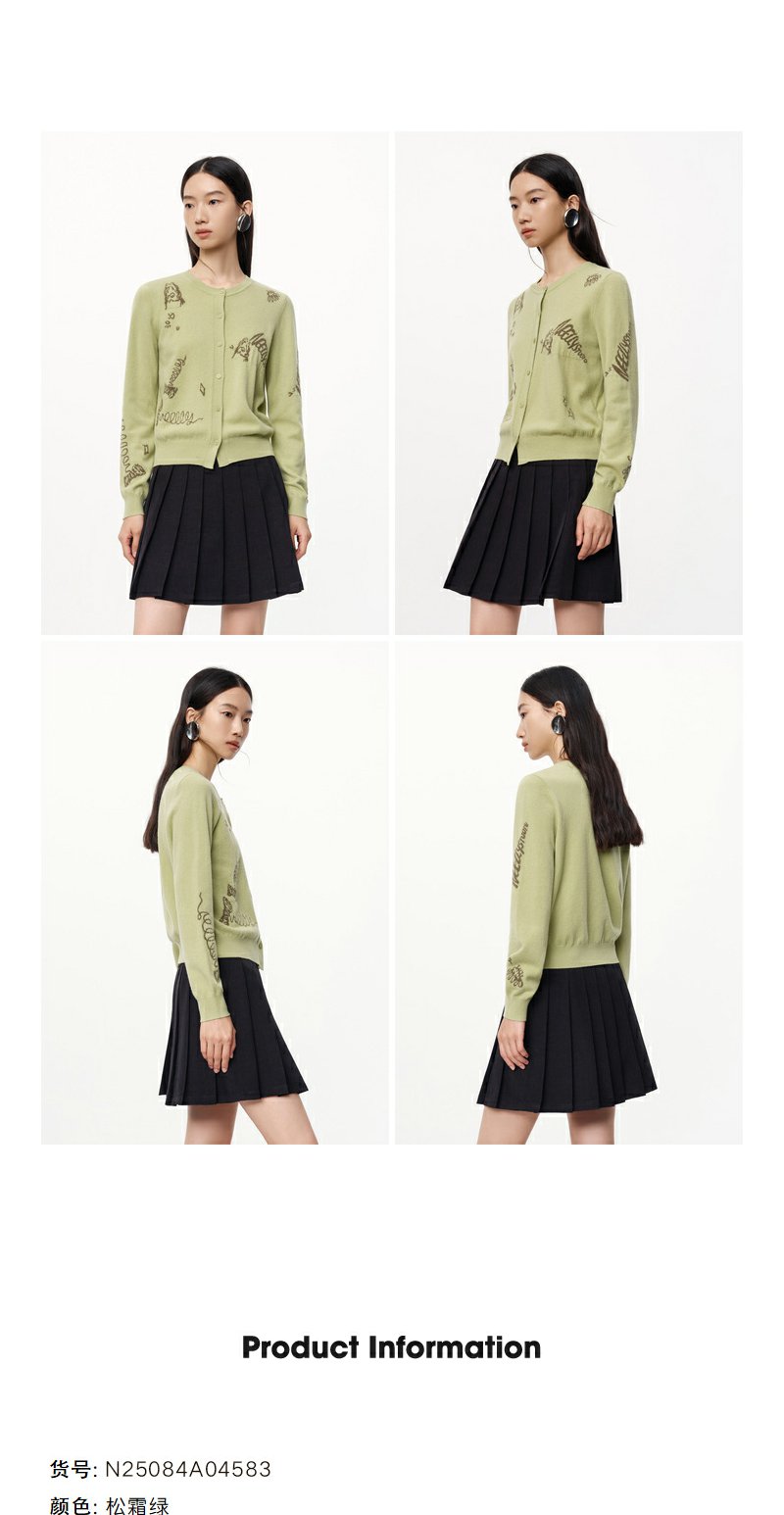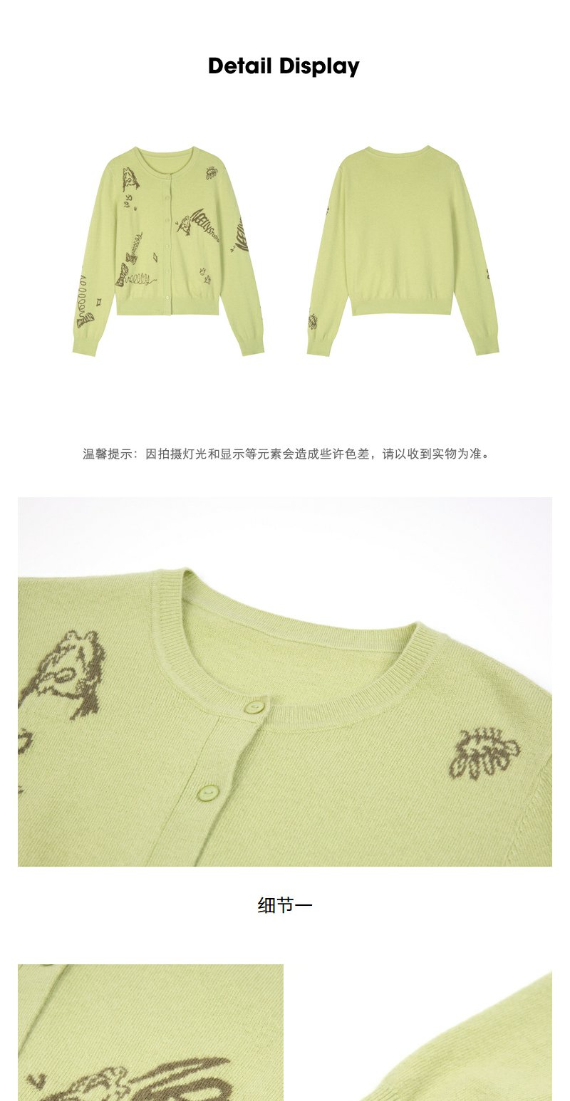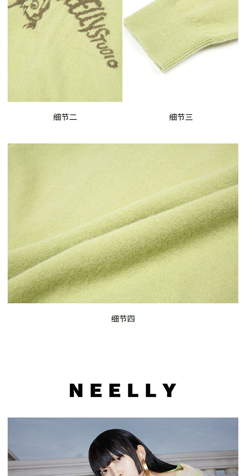 NEELLY纳俪秋季新款商场同款绵羊毛针织开衫女提花显白修身毛衣N25084A04583