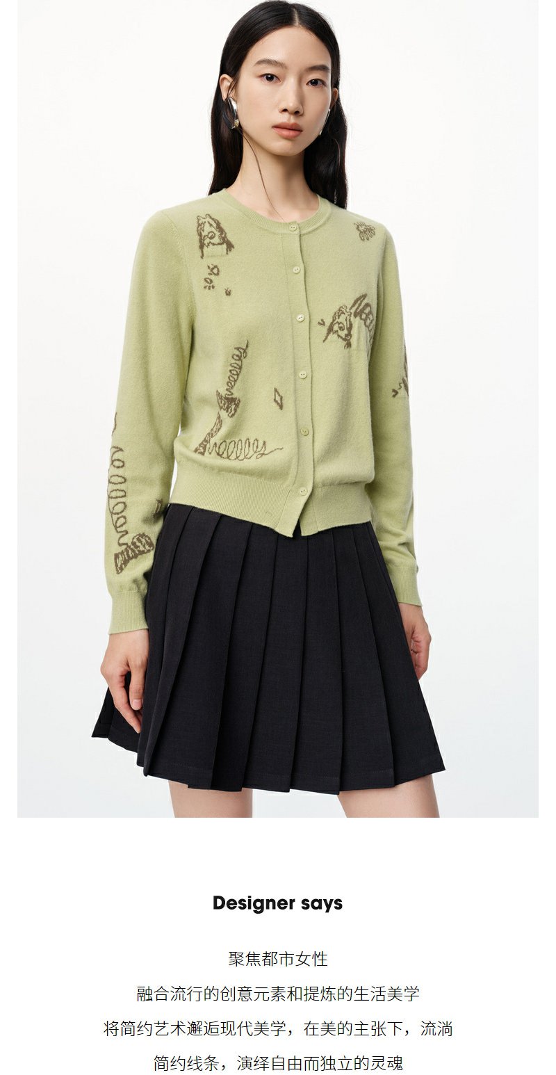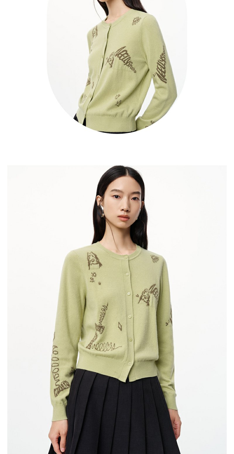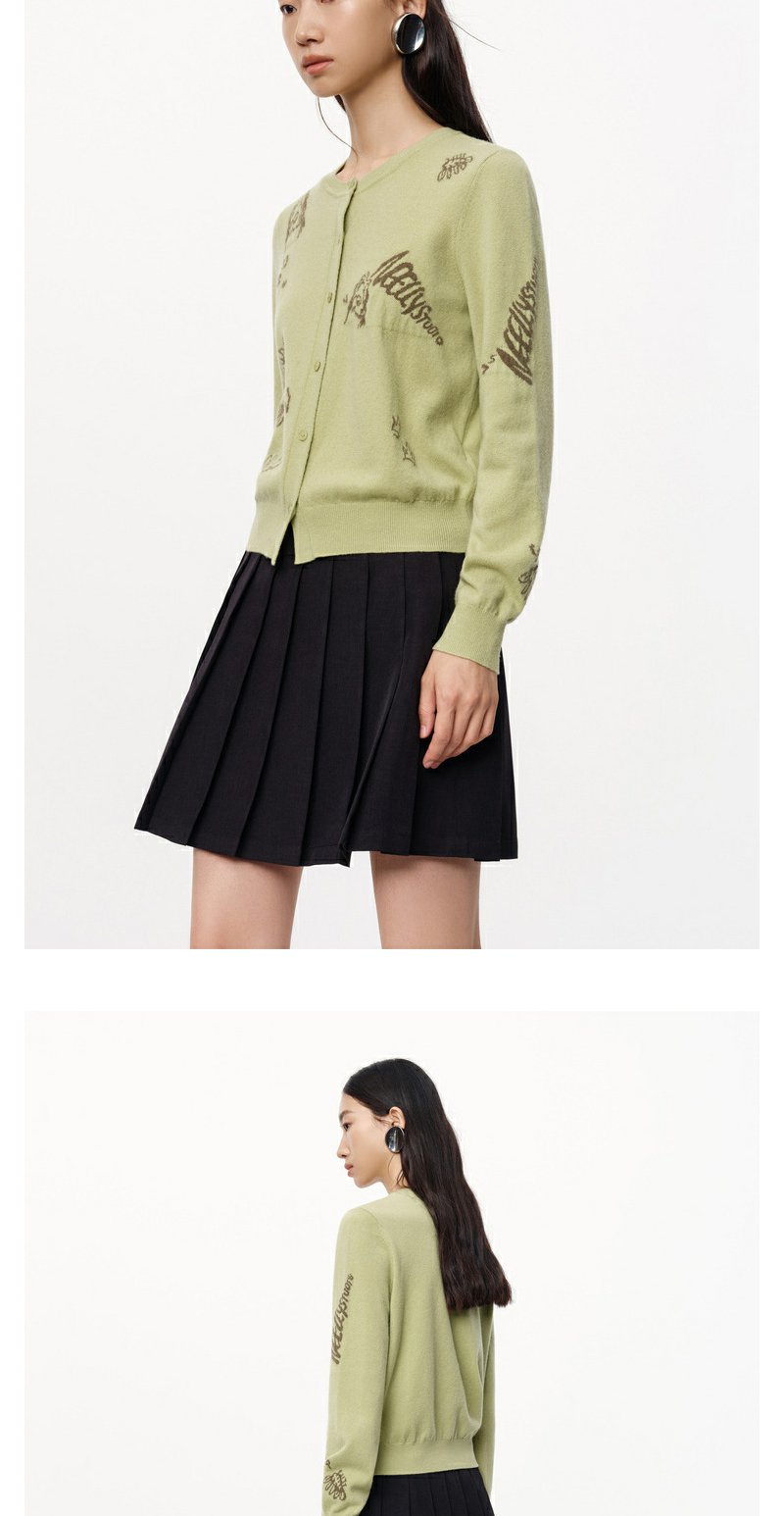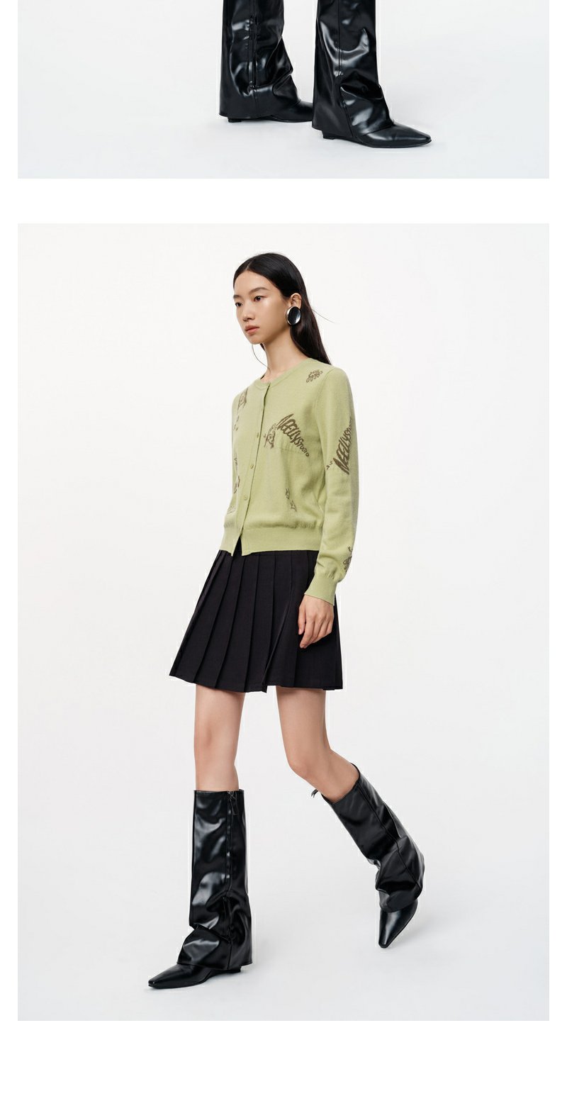 NEELLY纳俪秋季新款商场同款绵羊毛针织开衫女提花显白修身毛衣N25084A04583