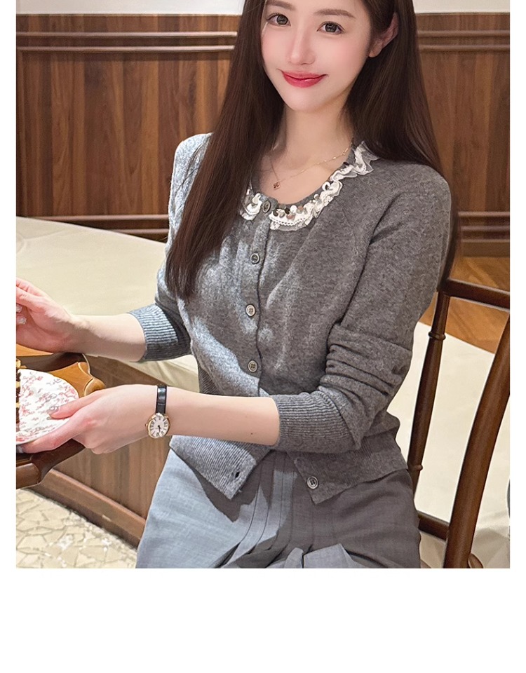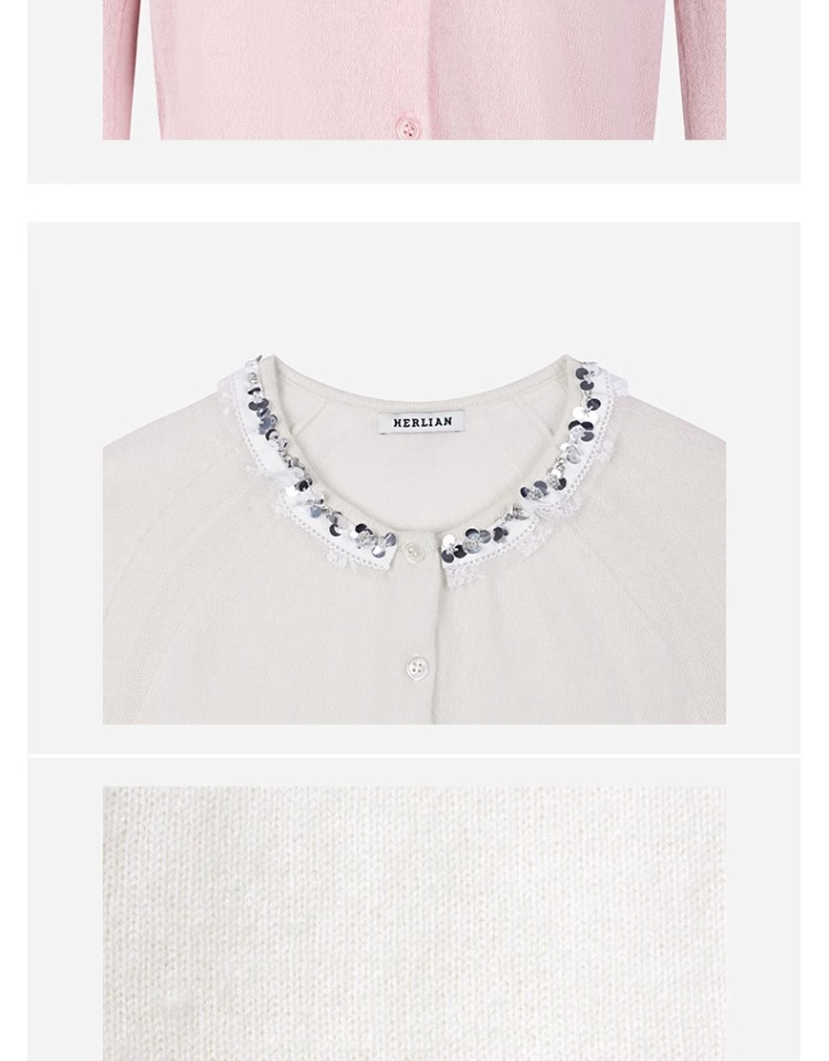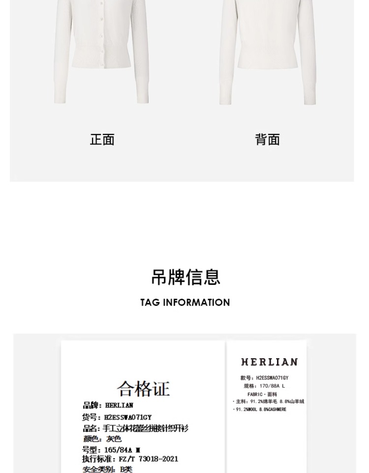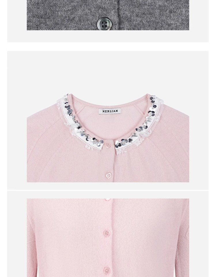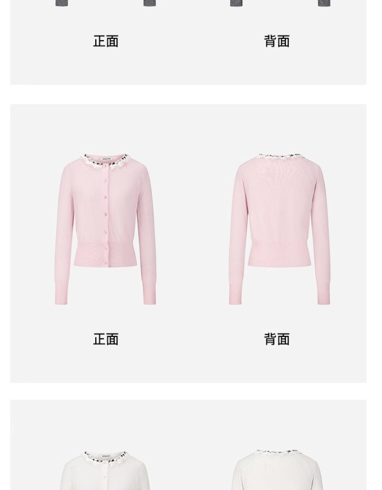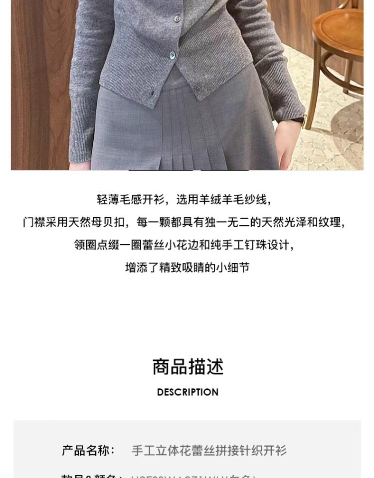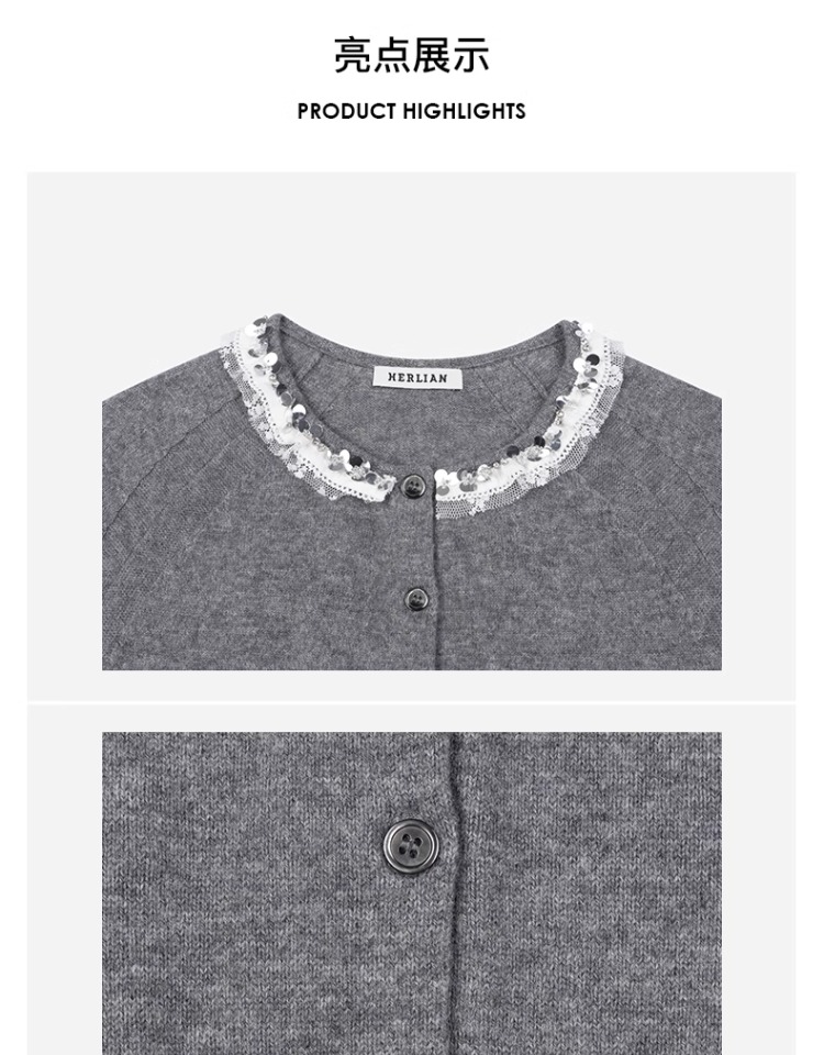 HERLIAN 2025年春季手工立体花女士蕾丝拼接针织开衫