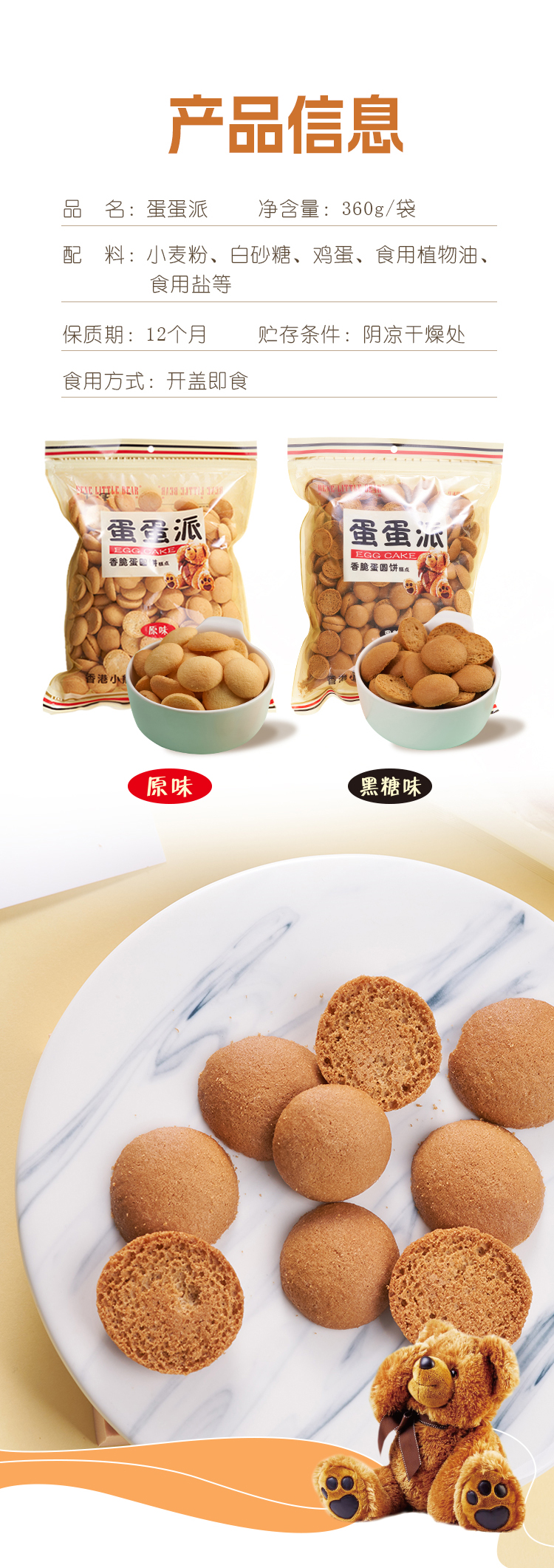 Rene Little Bear 香港小熊 原味/黑糖 蛋蛋派 360g
