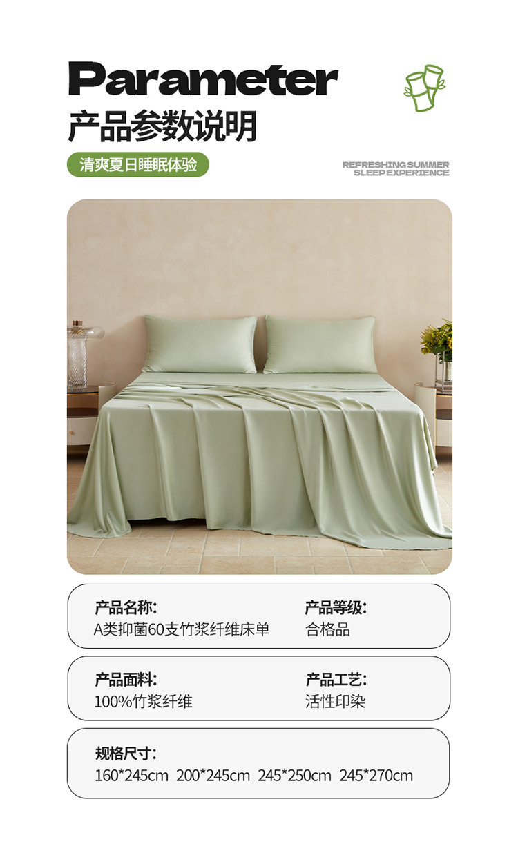 【60S竹纤维单床单】全棉床单单品良品砂洗纯棉A类床单140支长绒棉超细腻床单