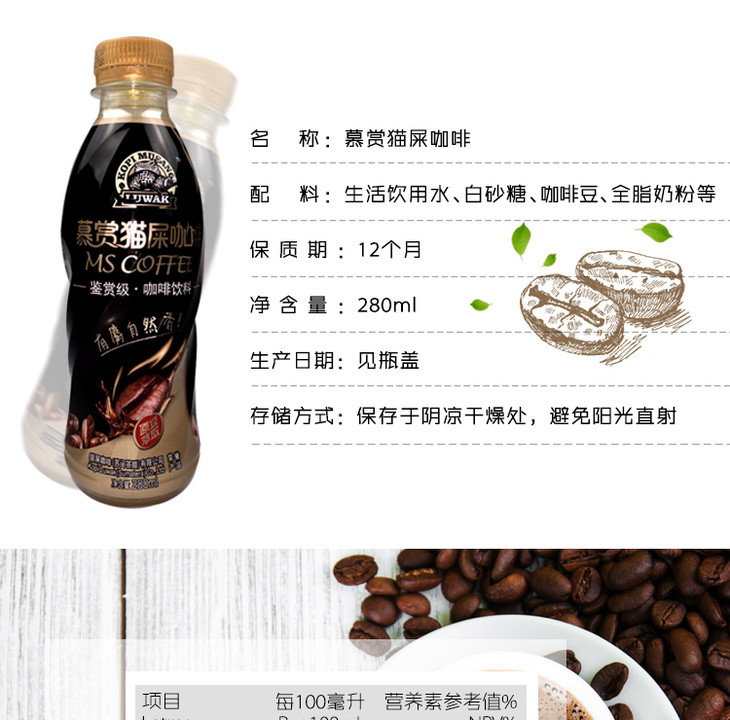 慕赏猫屎咖啡280ml