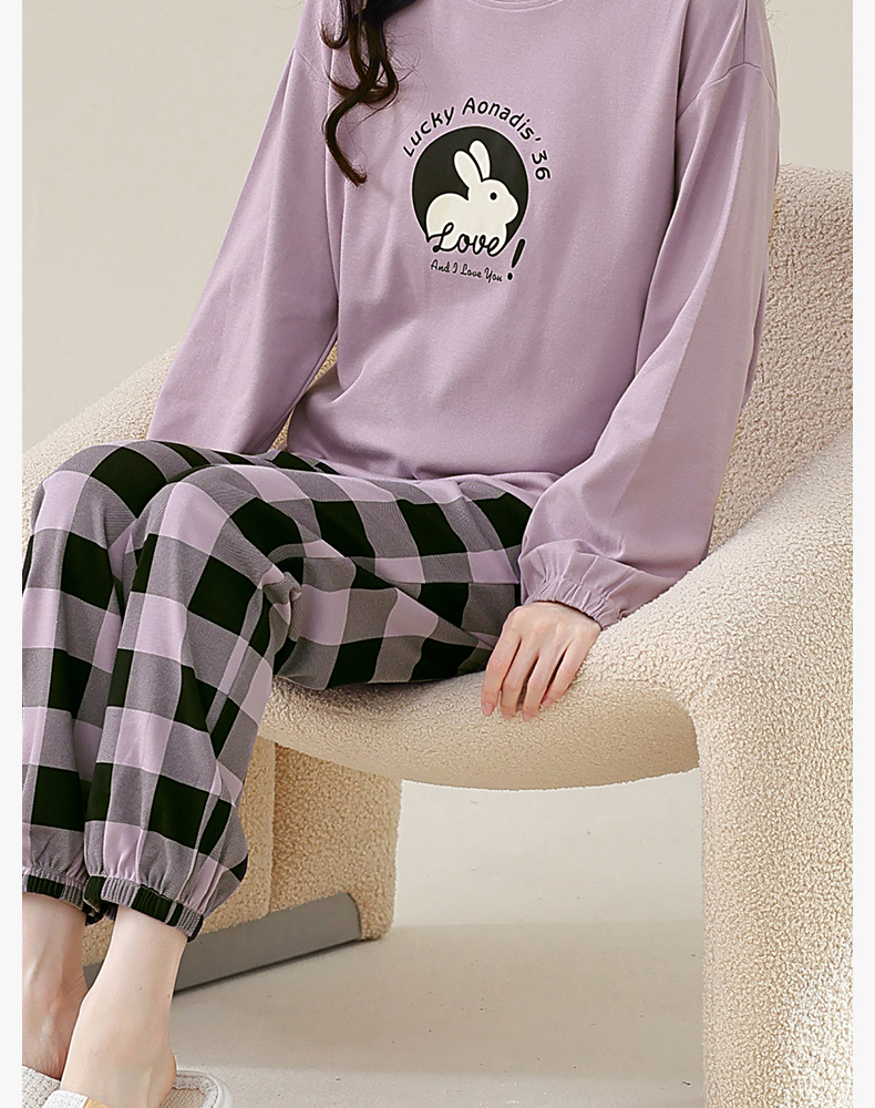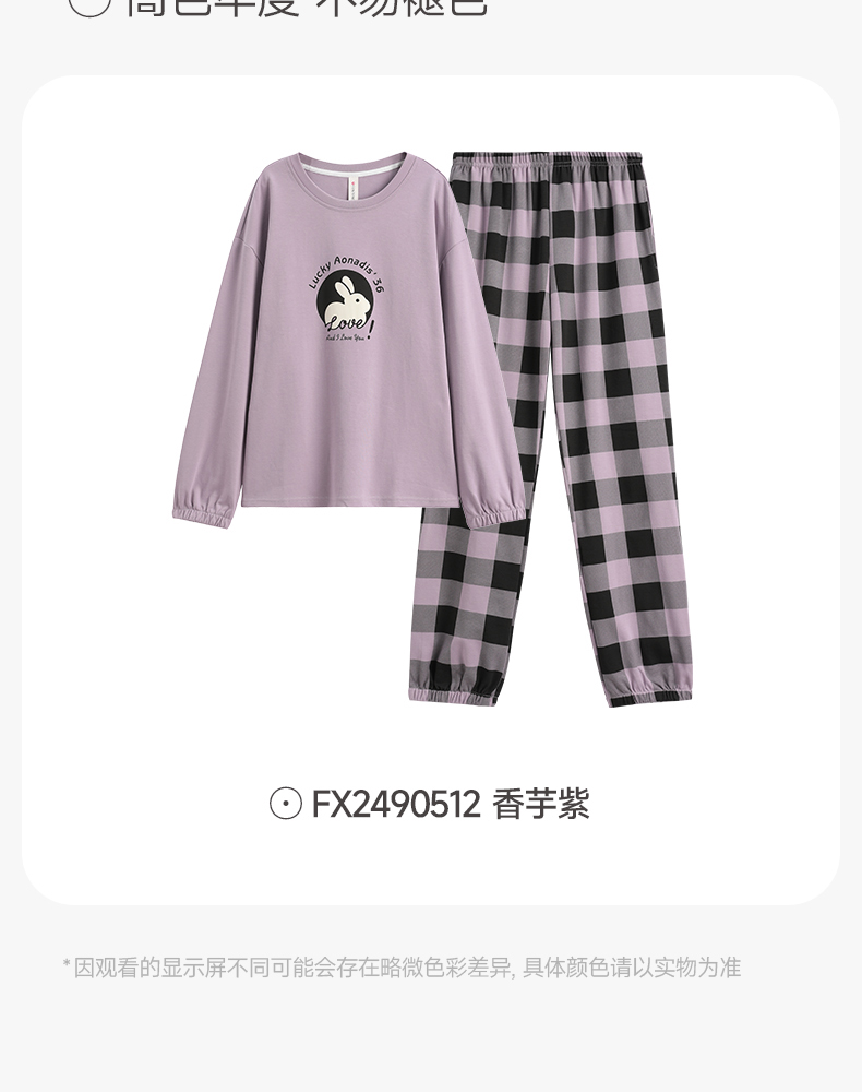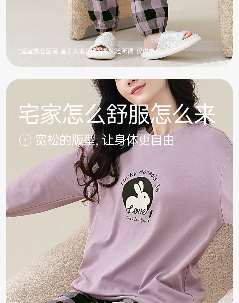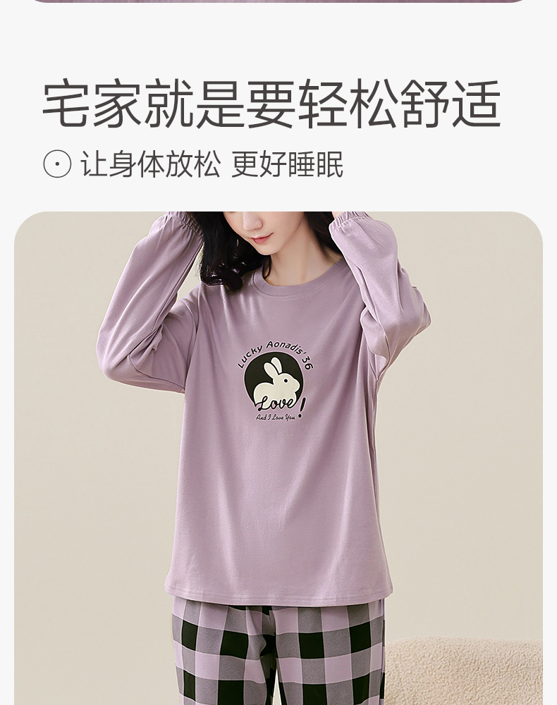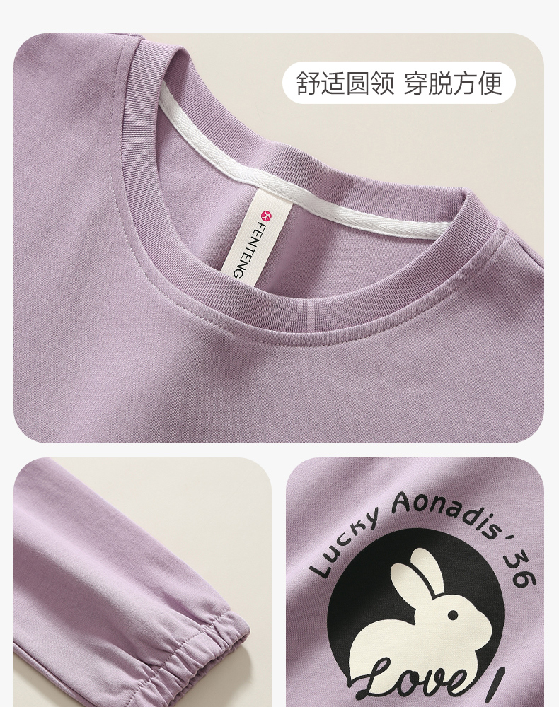 睡衣女纯棉春秋长袖圆领全棉韩版卡通少女宽松休闲家居服套装 芬腾