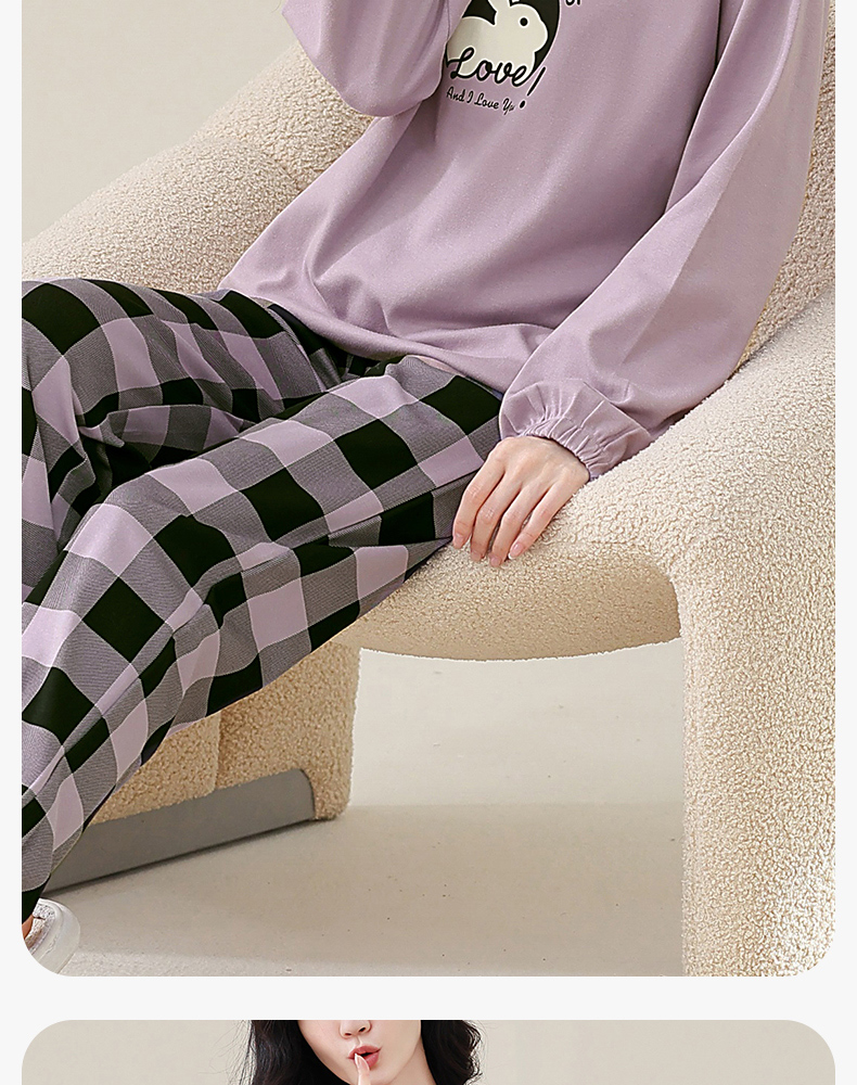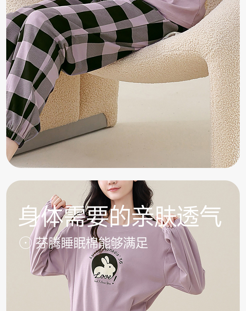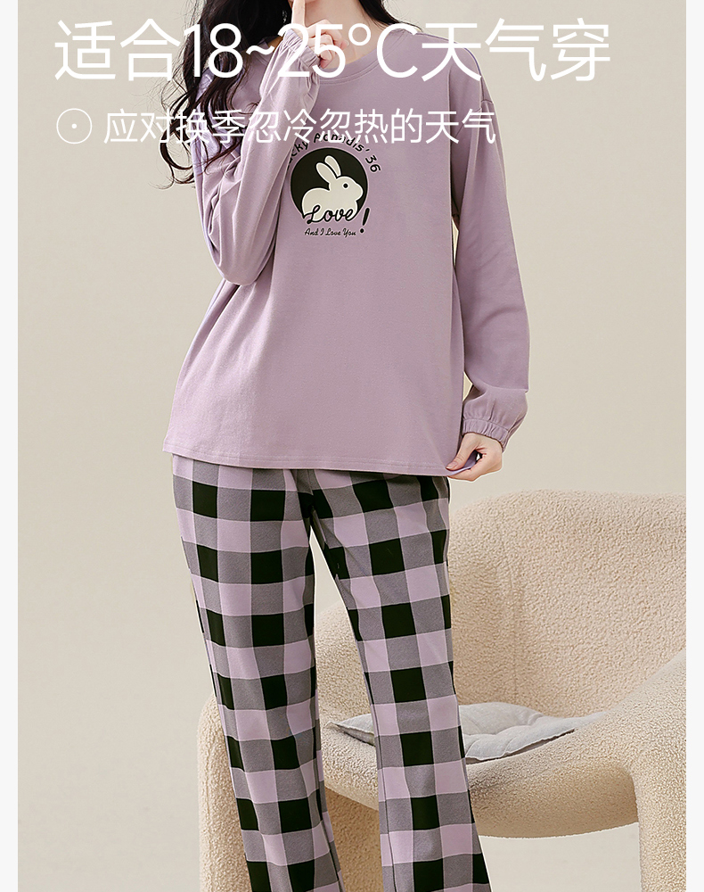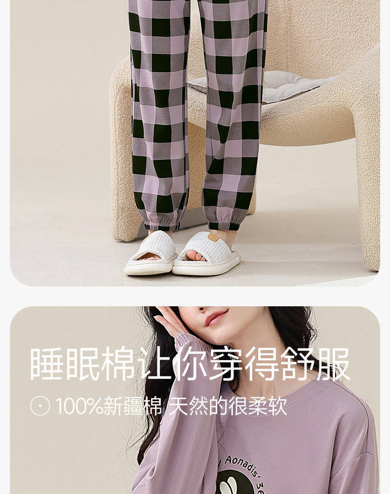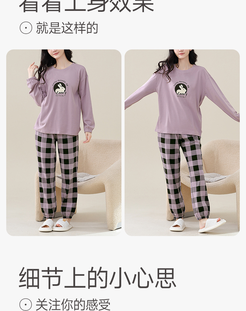 睡衣女纯棉春秋长袖圆领全棉韩版卡通少女宽松休闲家居服套装 芬腾